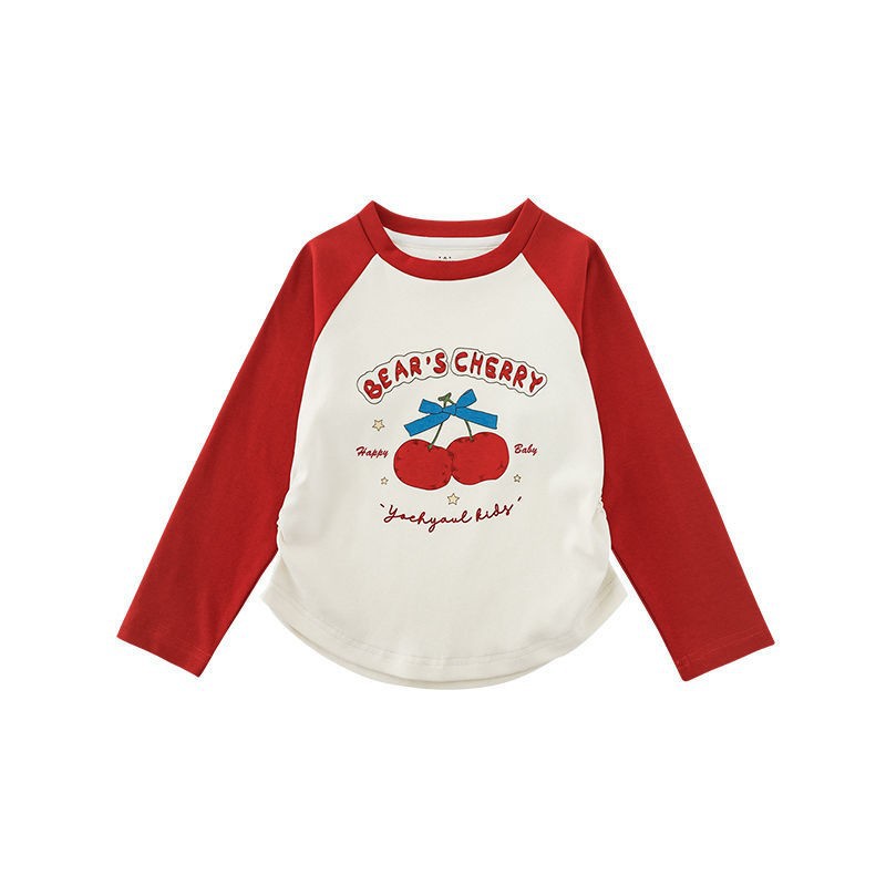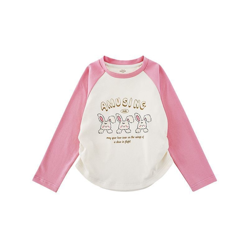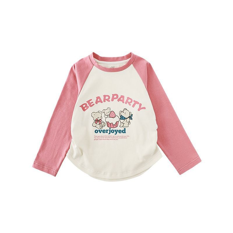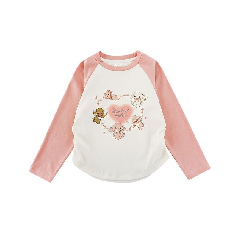 내 갈비뼈 소녀의 만화 인쇄 티셔츠 가을 어린이 활주 귀여운 대조 라글란 소매 캐주얼 티셔츠 트렌디