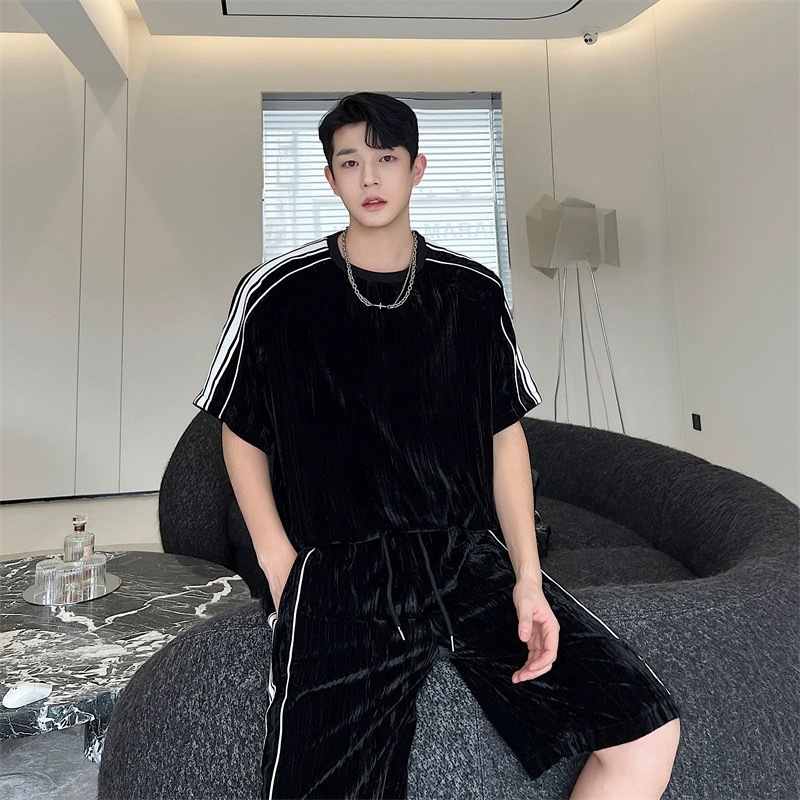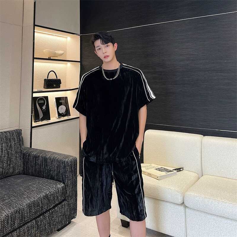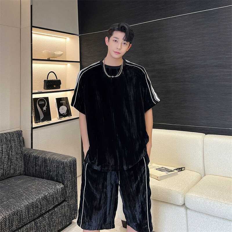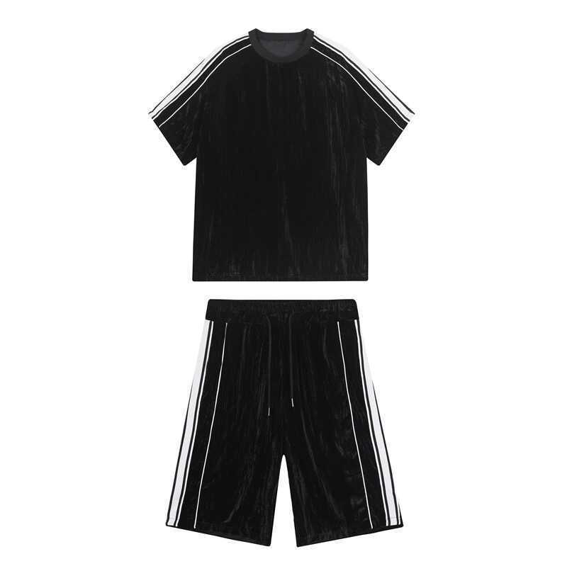 2024 새로운 와플 반팔 티셔츠 세트 소년 반바지 조커 레저 스포츠 여름 옷 세트스토어 가기
