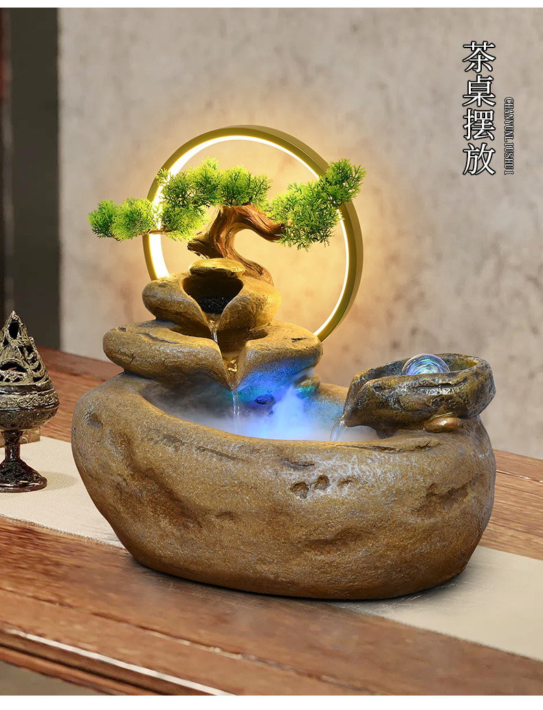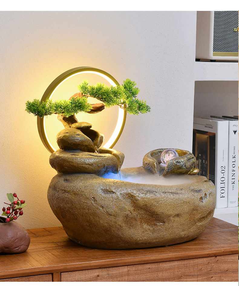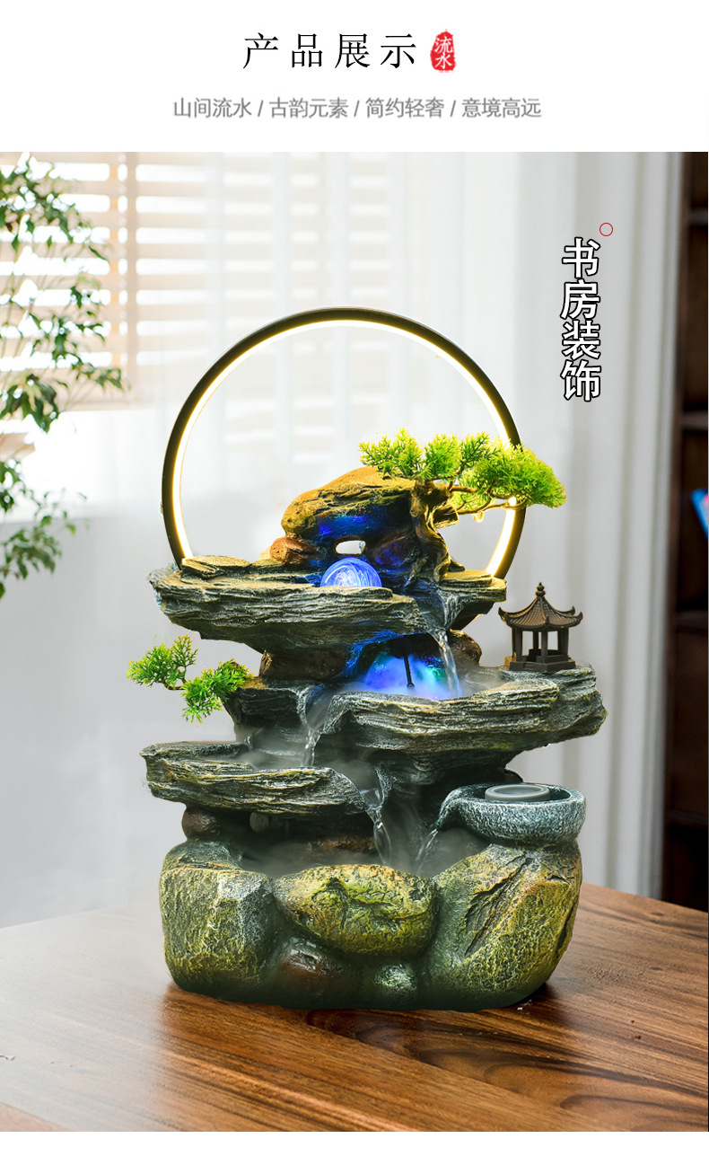 오픈 오피스 계산대 산악 순환 물 풍수 휠 장식을 위한 국경 간 데스크탑 러그 워터 분수 장식품