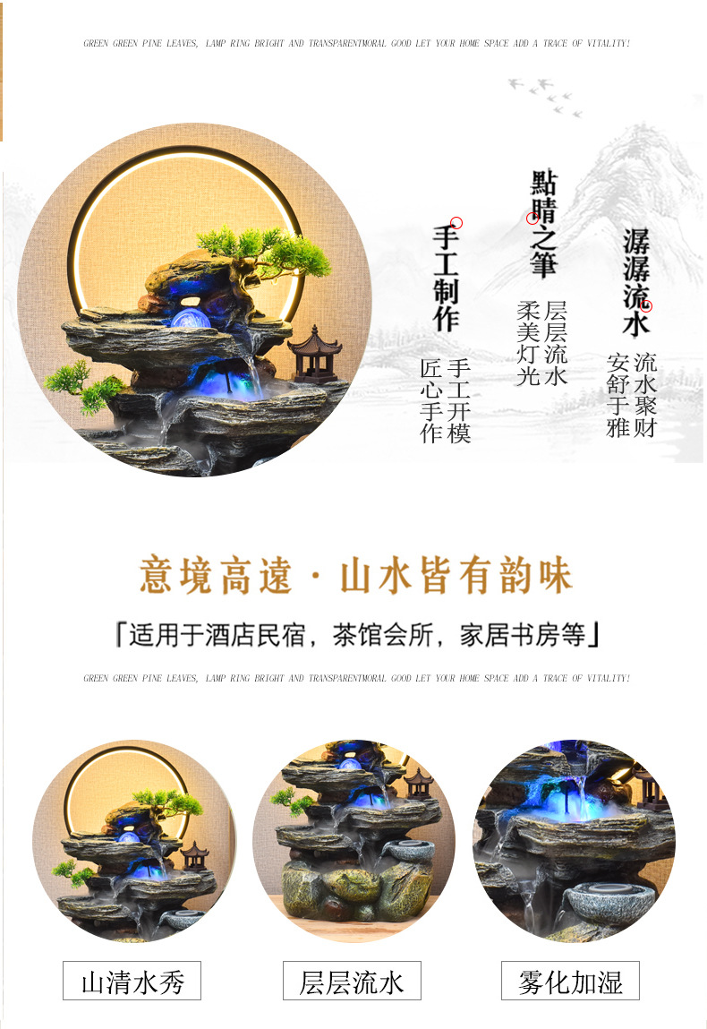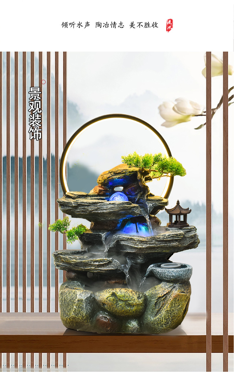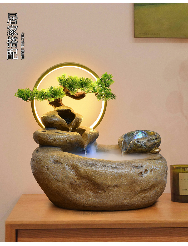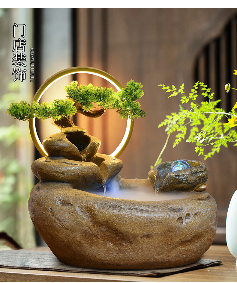 오픈 오피스 계산대 산악 순환 물 풍수 휠 장식을 위한 국경 간 데스크탑 러그 워터 분수 장식품스토어 가기