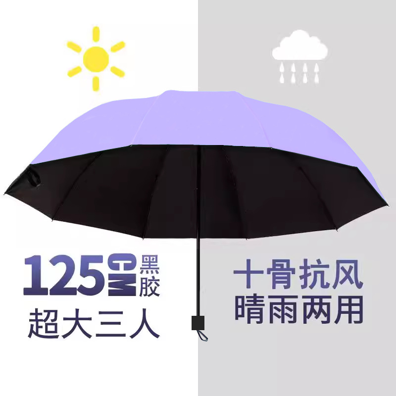 • 10본 특대형 비가 오나비 검정 플라스틱우산 - 3인 [보라색]
