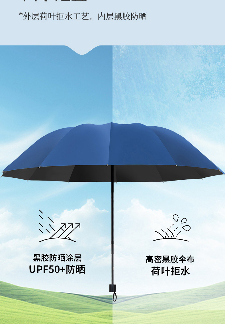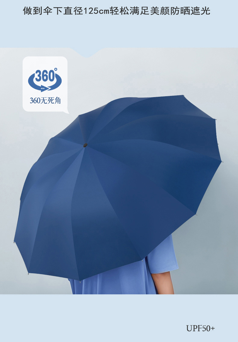 12-학생용 보강 햇빛과 비 이중 사용 태양 우산 대형 남성과 여성을위한 뼈 접는 우산