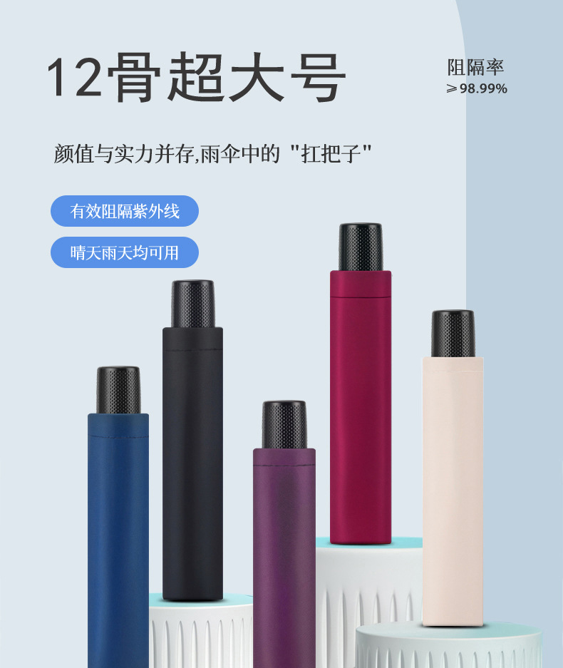 12-학생용 보강 햇빛과 비 이중 사용 태양 우산 대형 남성과 여성을위한 뼈 접는 우산스토어 가기
