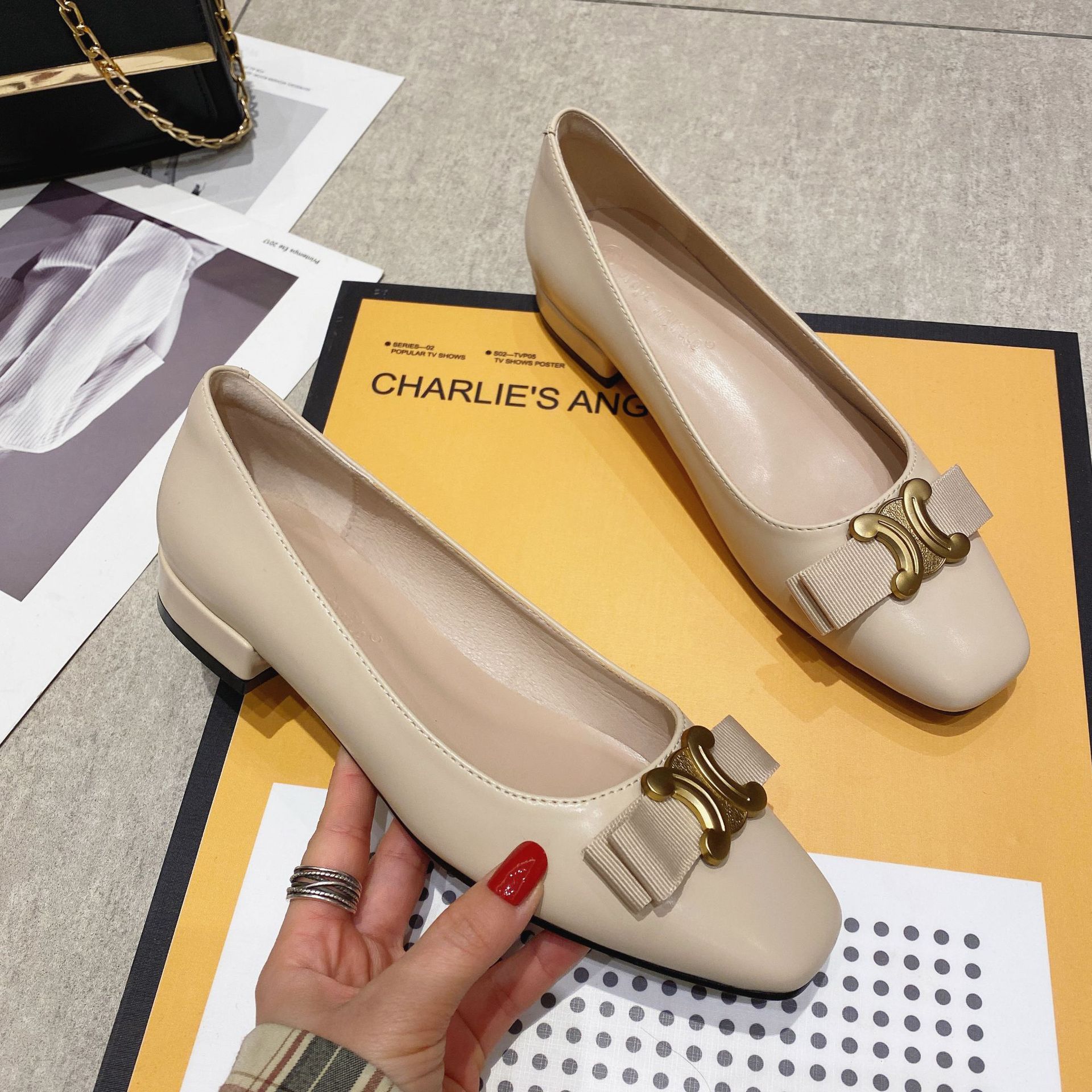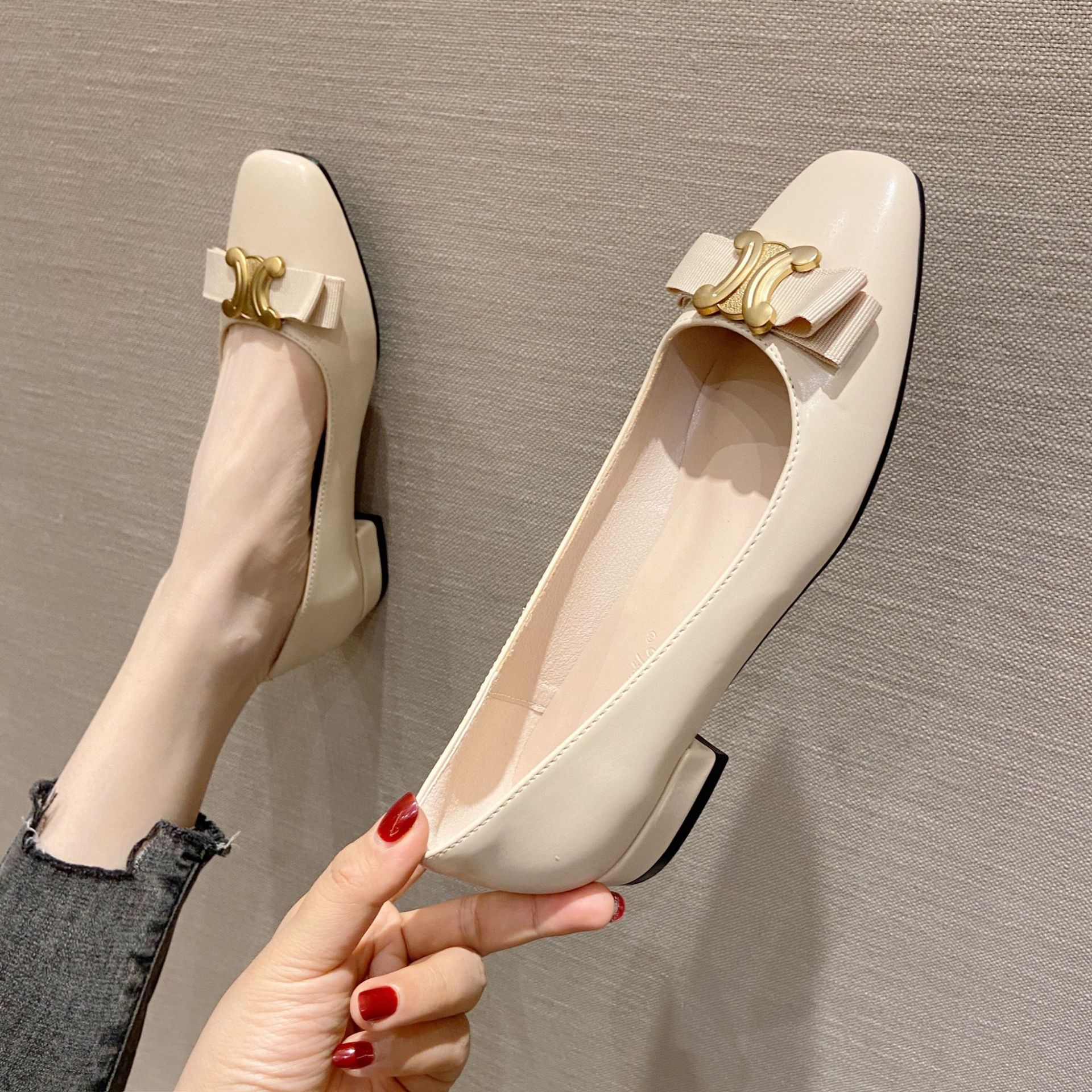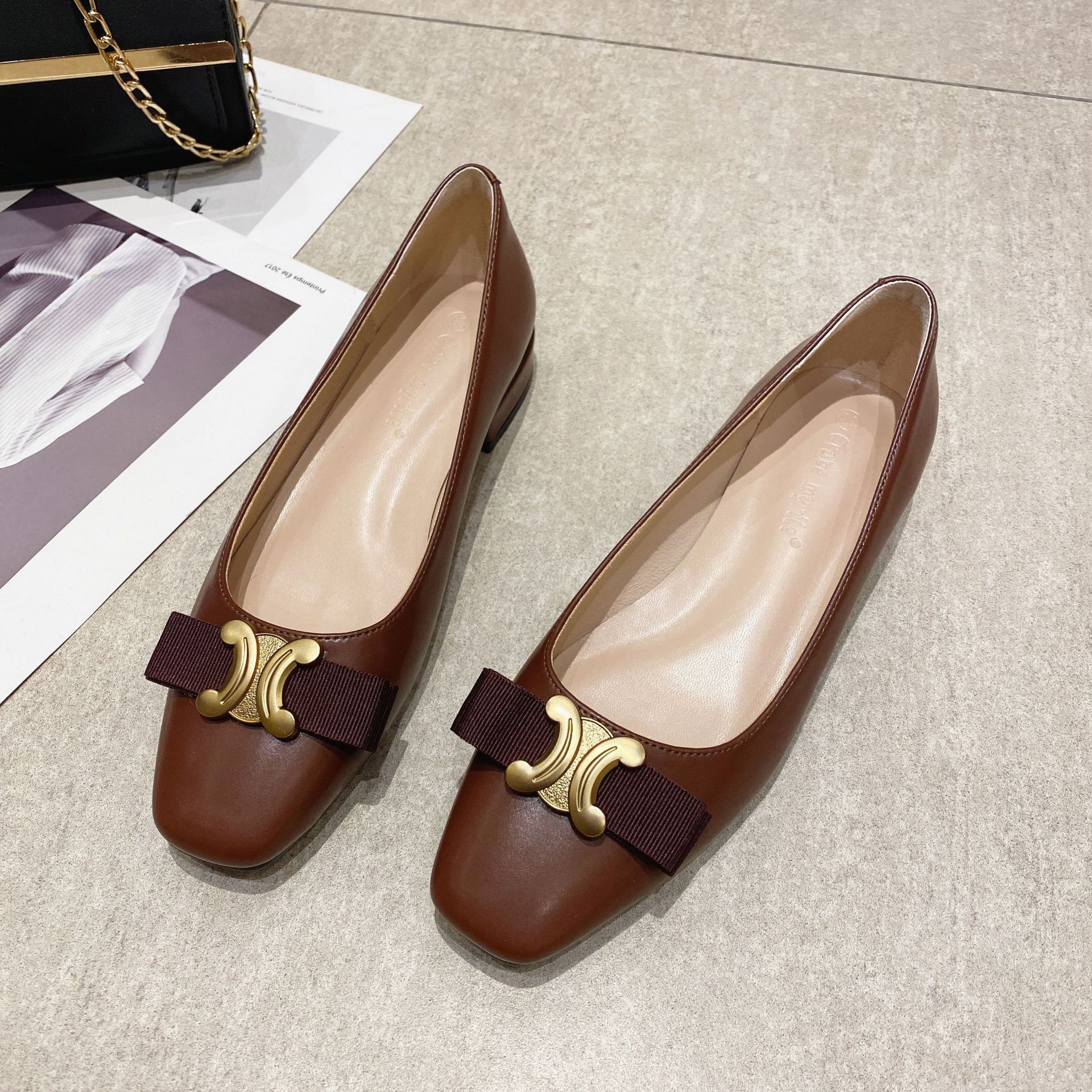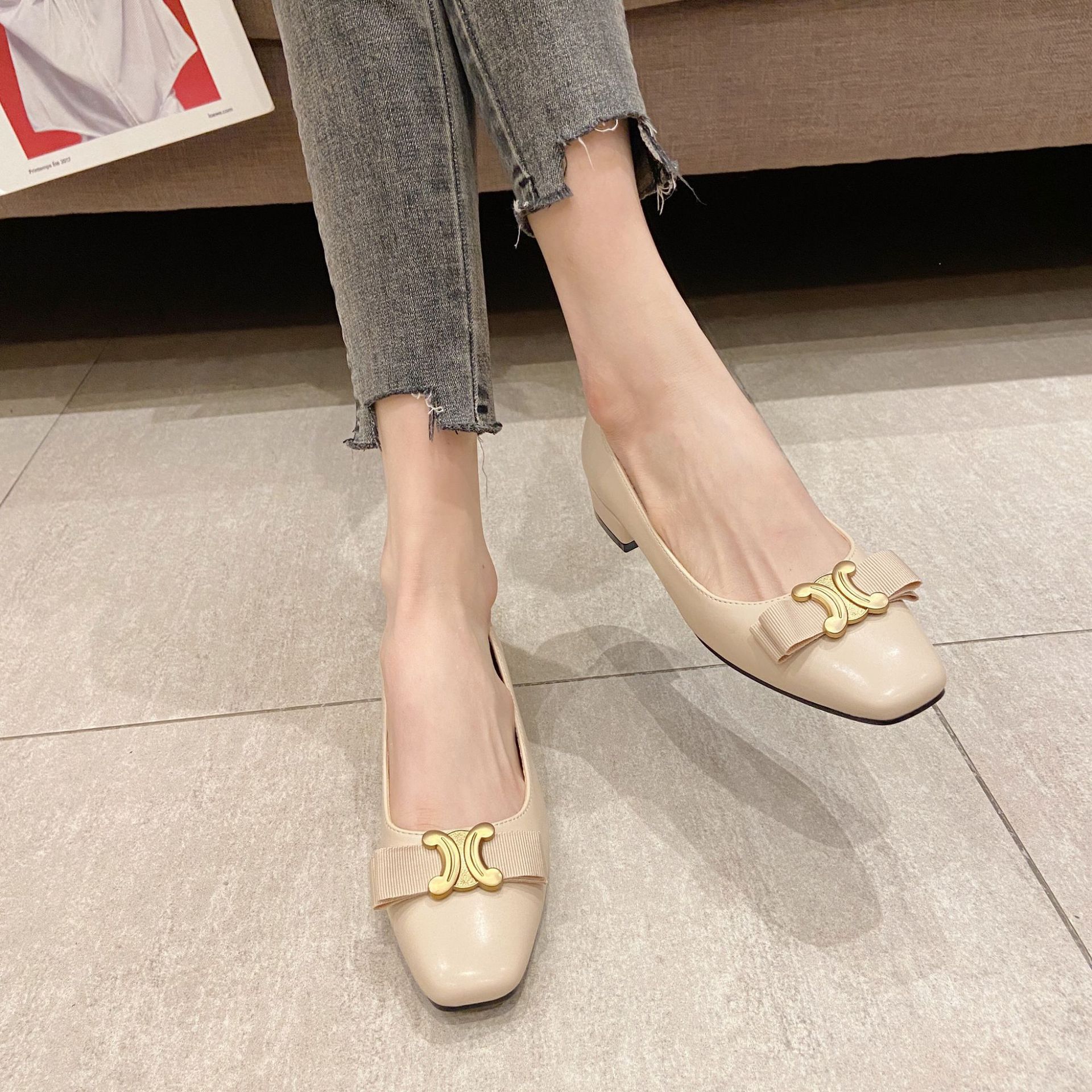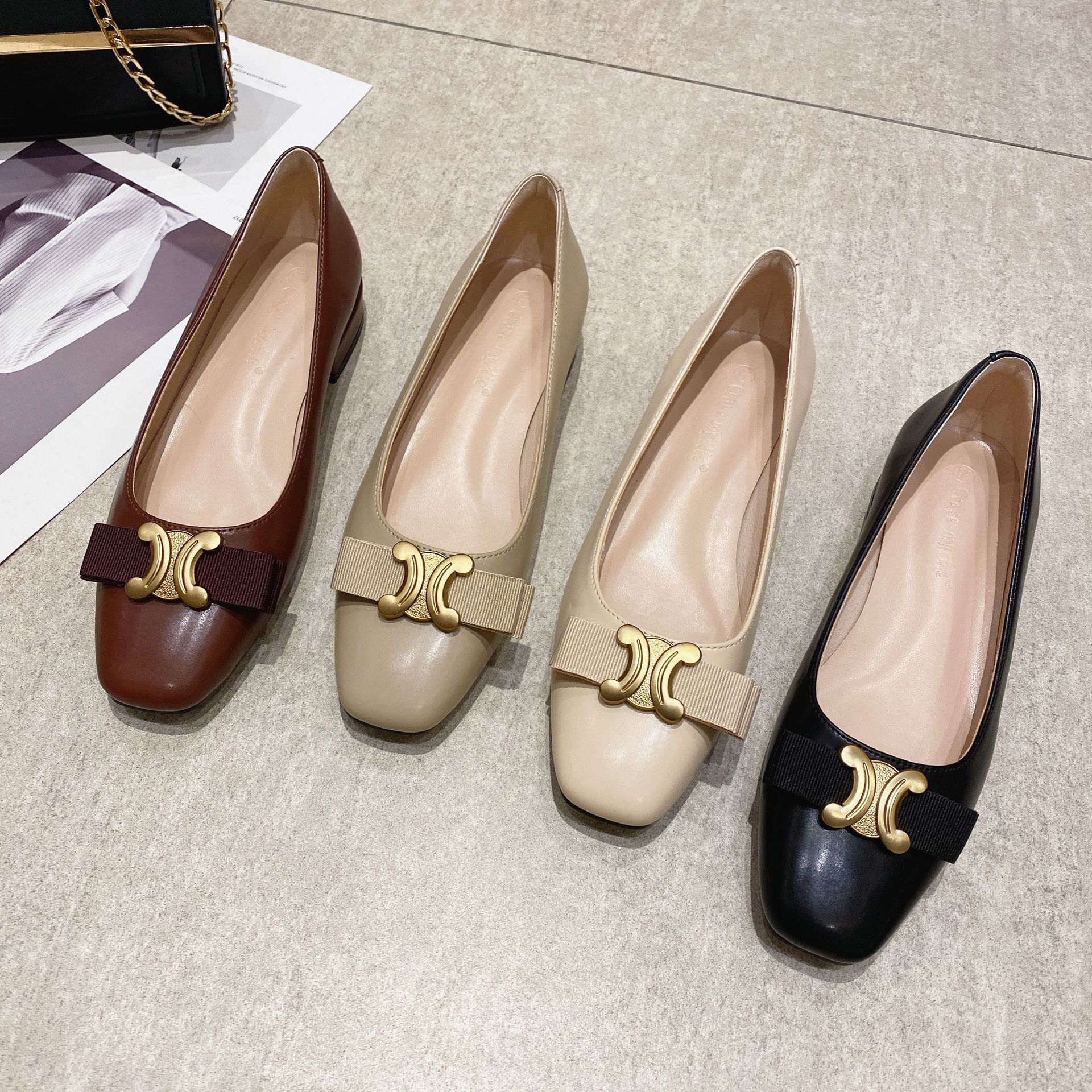 여성용 스퀘어 토 슈즈, 새로운 스타일, 개선문 리본 플랫 메탈 버클 슈즈, 로우 힐 여성 슈즈, 스몰 프래그런스 스타일 가죽스토어 가기