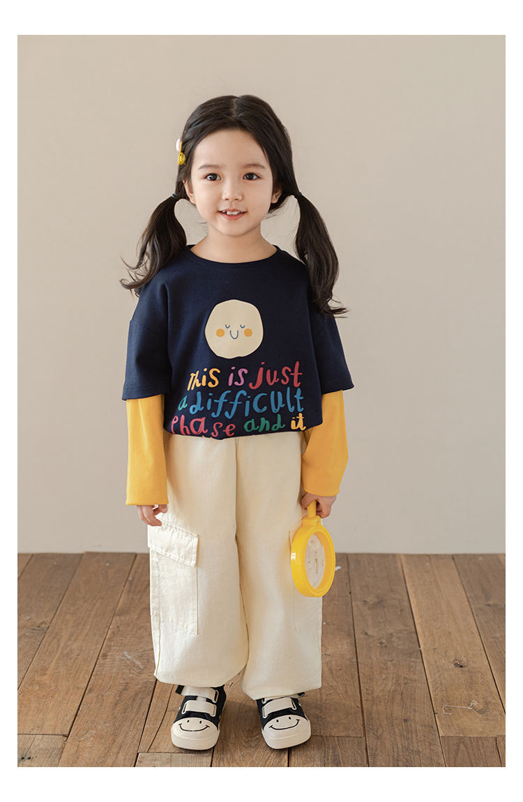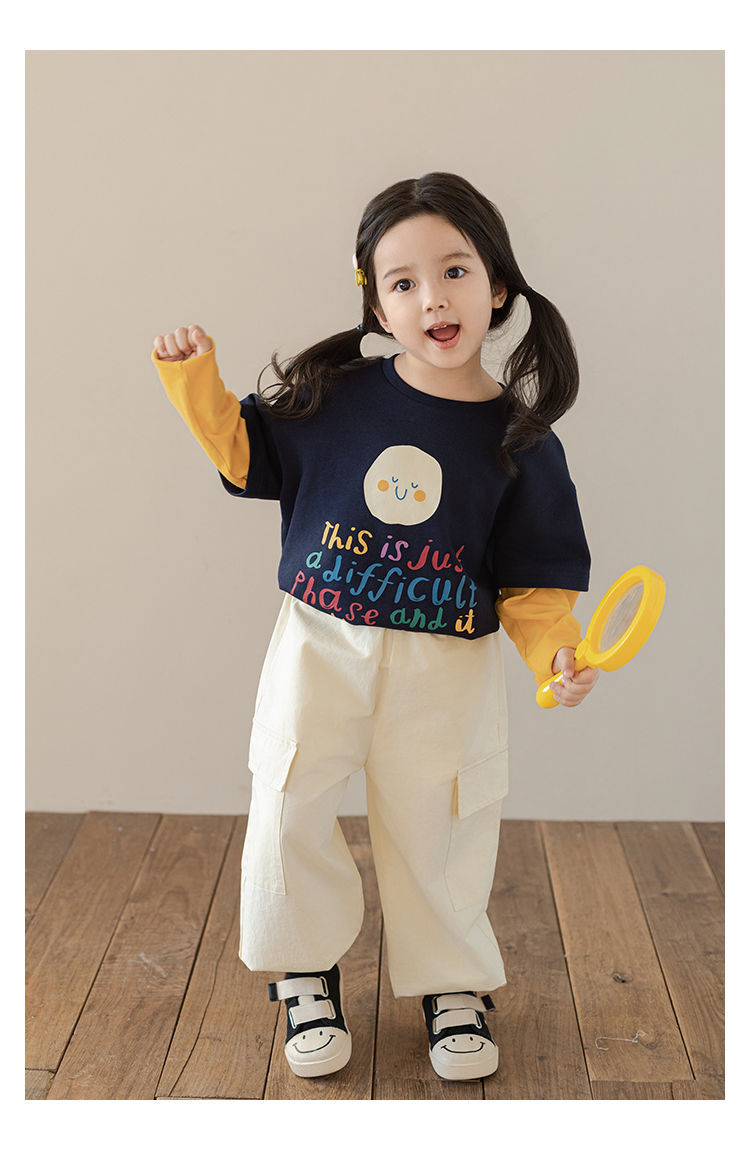 Wulibu Yi Girls 2025 가을 플립 포켓 오버올 아동복, 패셔너블하고 귀엽고 루즈한 캐주얼 바지