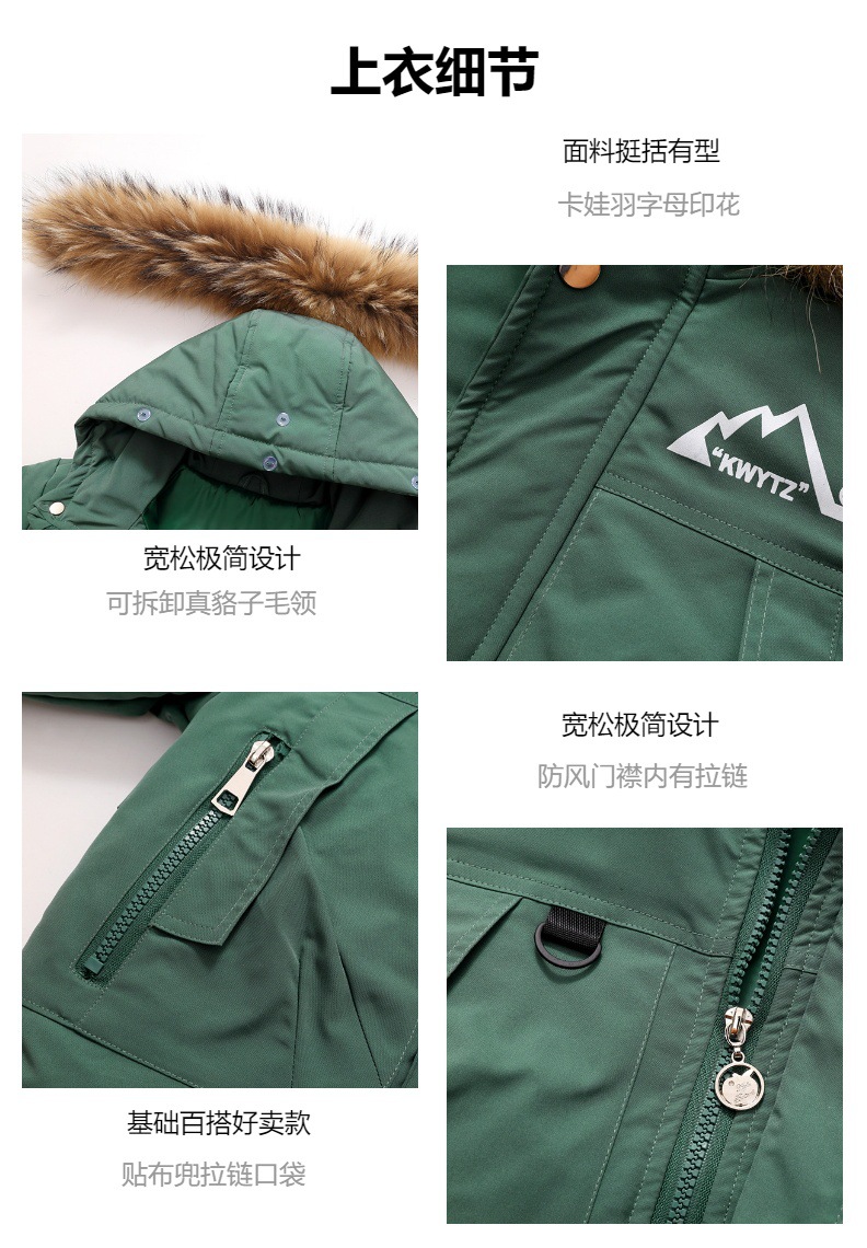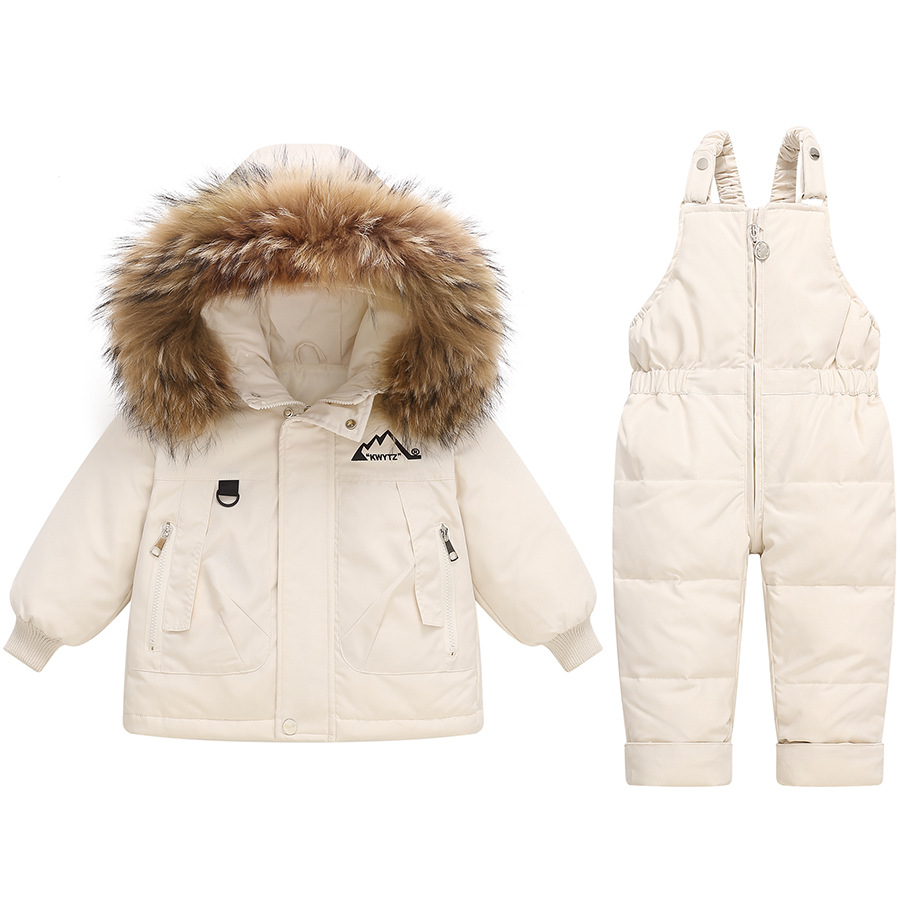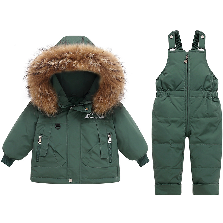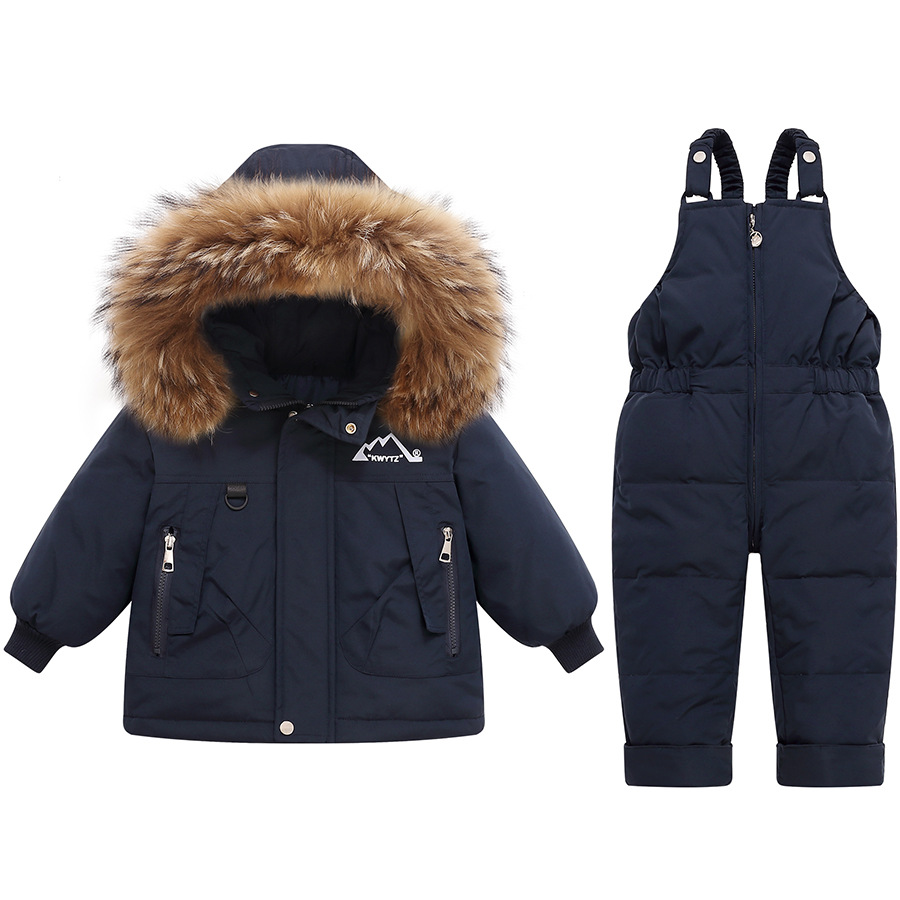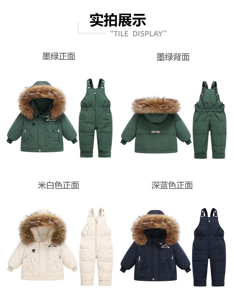 1-3 세 아기 진짜 너구리 모피 칼라 다운 재킷 소년과 소녀 분리 가능한 가랑이 멜빵 2 피스 두꺼운 따뜻한