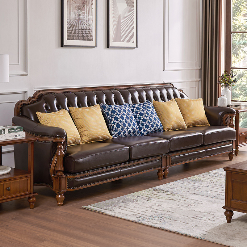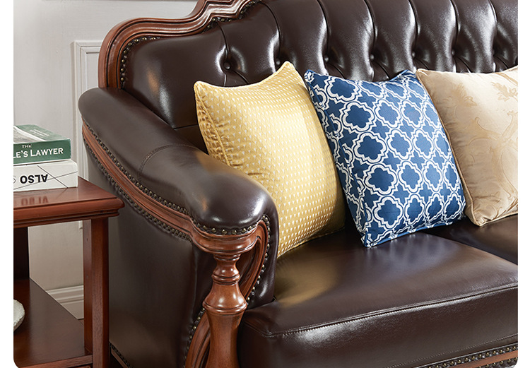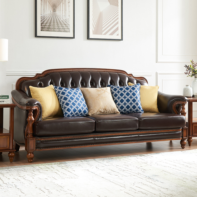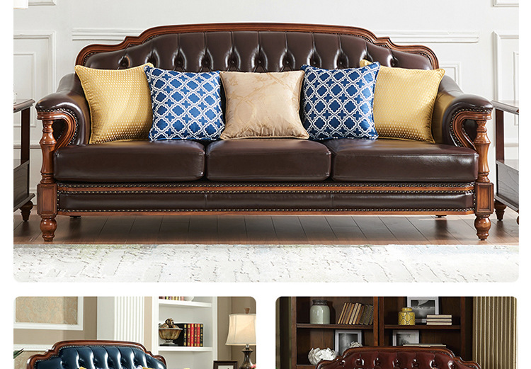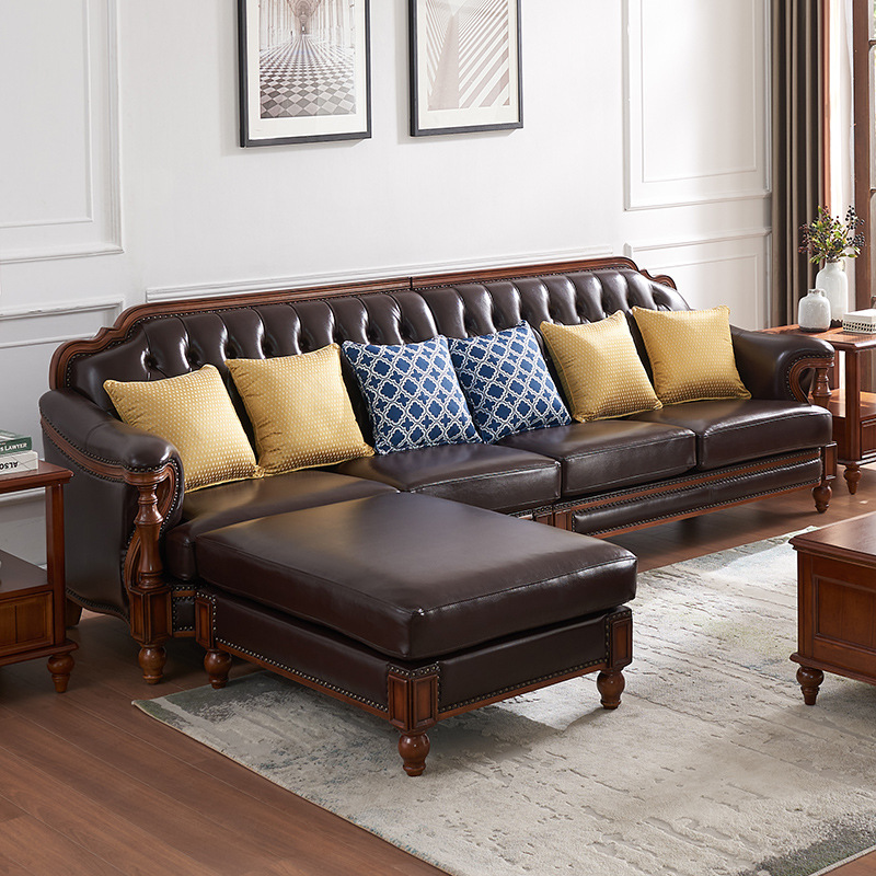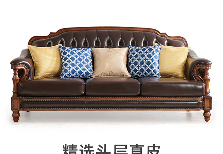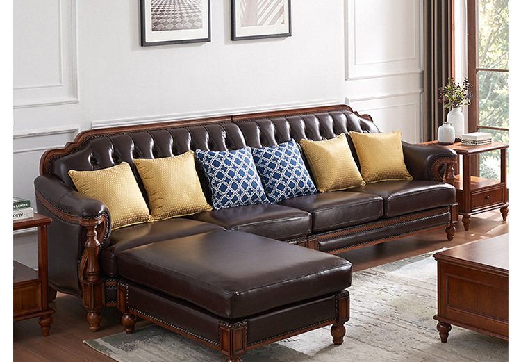 아메리칸 스타일 솔리드 우드 가죽 소파 조합 거실 간단한 현대 유럽 스타일 3-4 석 임페리얼 첩관 코너 가벼운 고급 가구