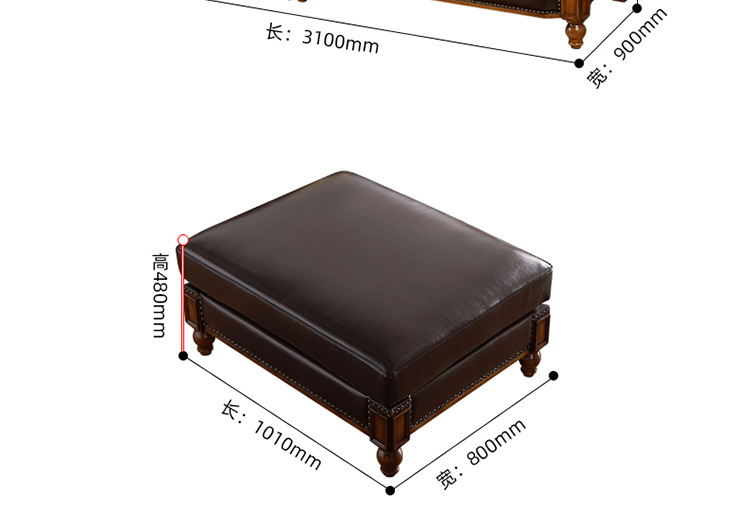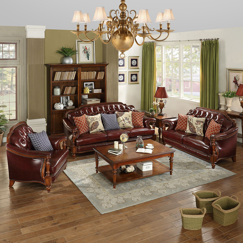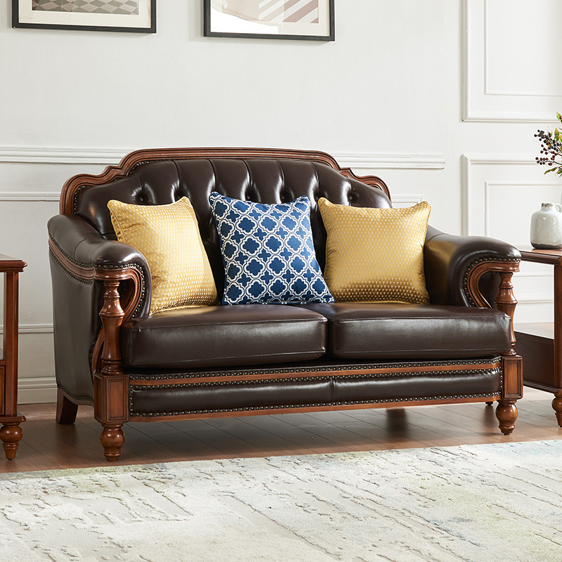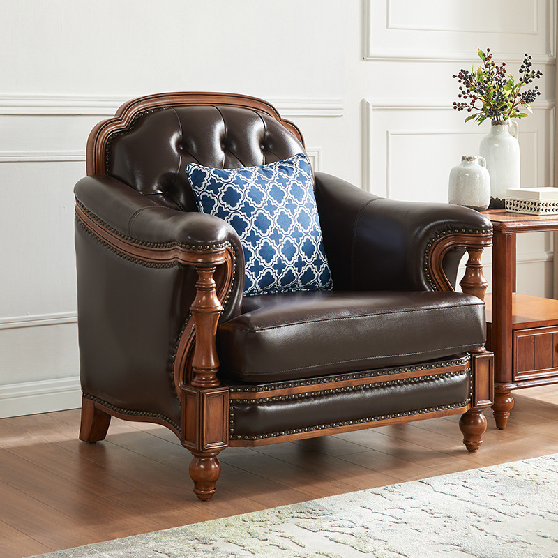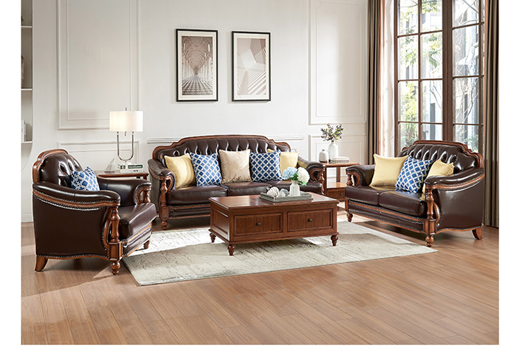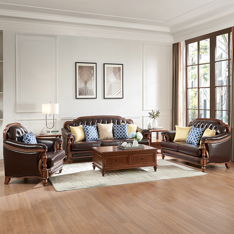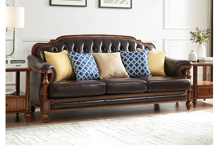 아메리칸 스타일 솔리드 우드 가죽 소파 조합 거실 간단한 현대 유럽 스타일 3-4 석 임페리얼 첩관 코너 가벼운 고급 가구
