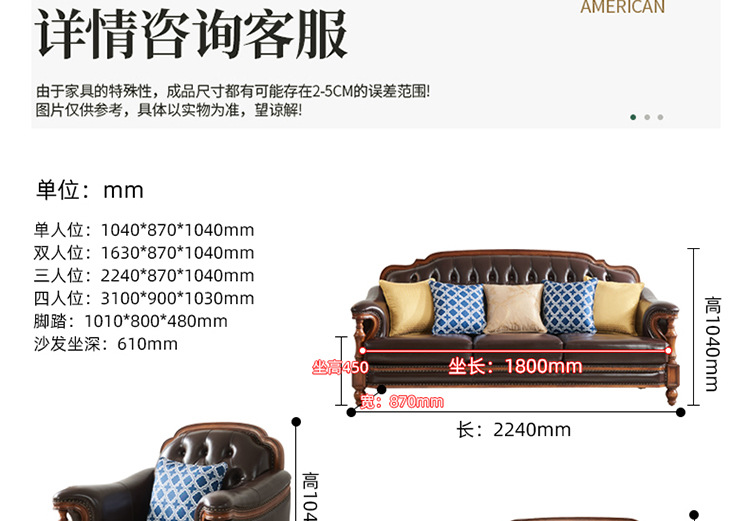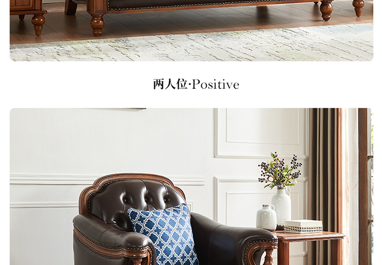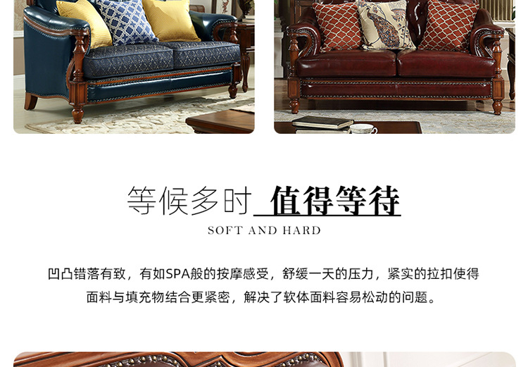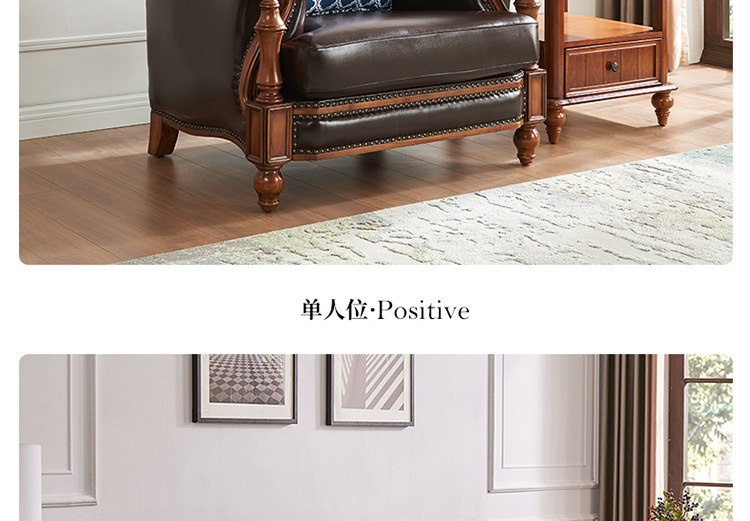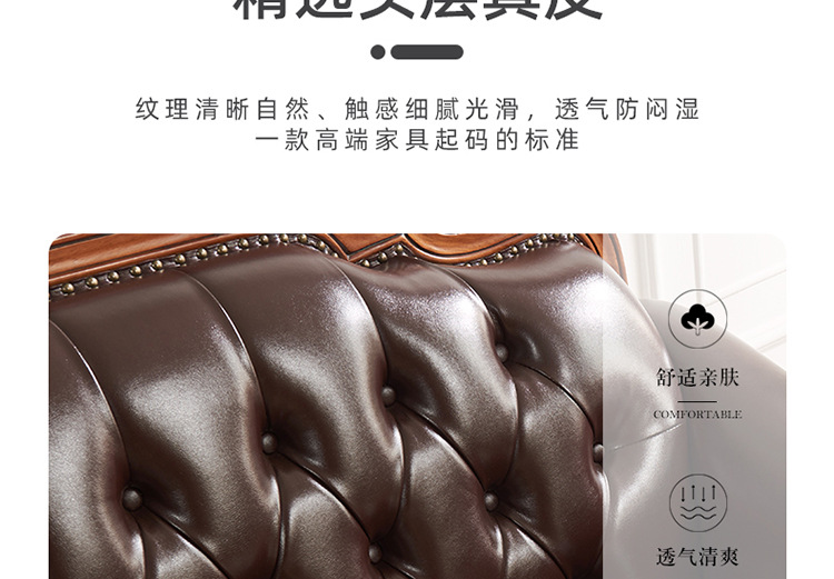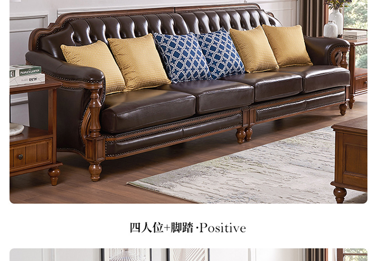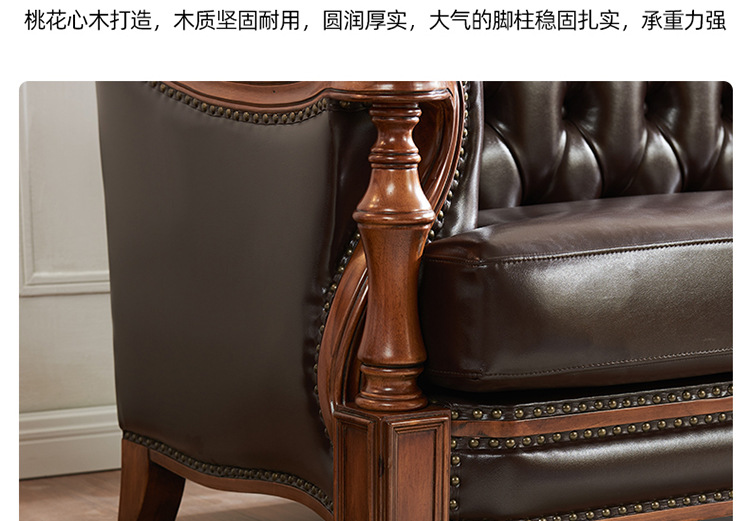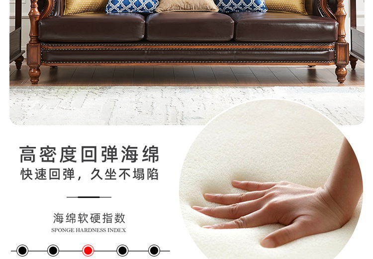 아메리칸 스타일 솔리드 우드 가죽 소파 조합 거실 간단한 현대 유럽 스타일 3-4 석 임페리얼 첩관 코너 가벼운 고급 가구스토어 가기