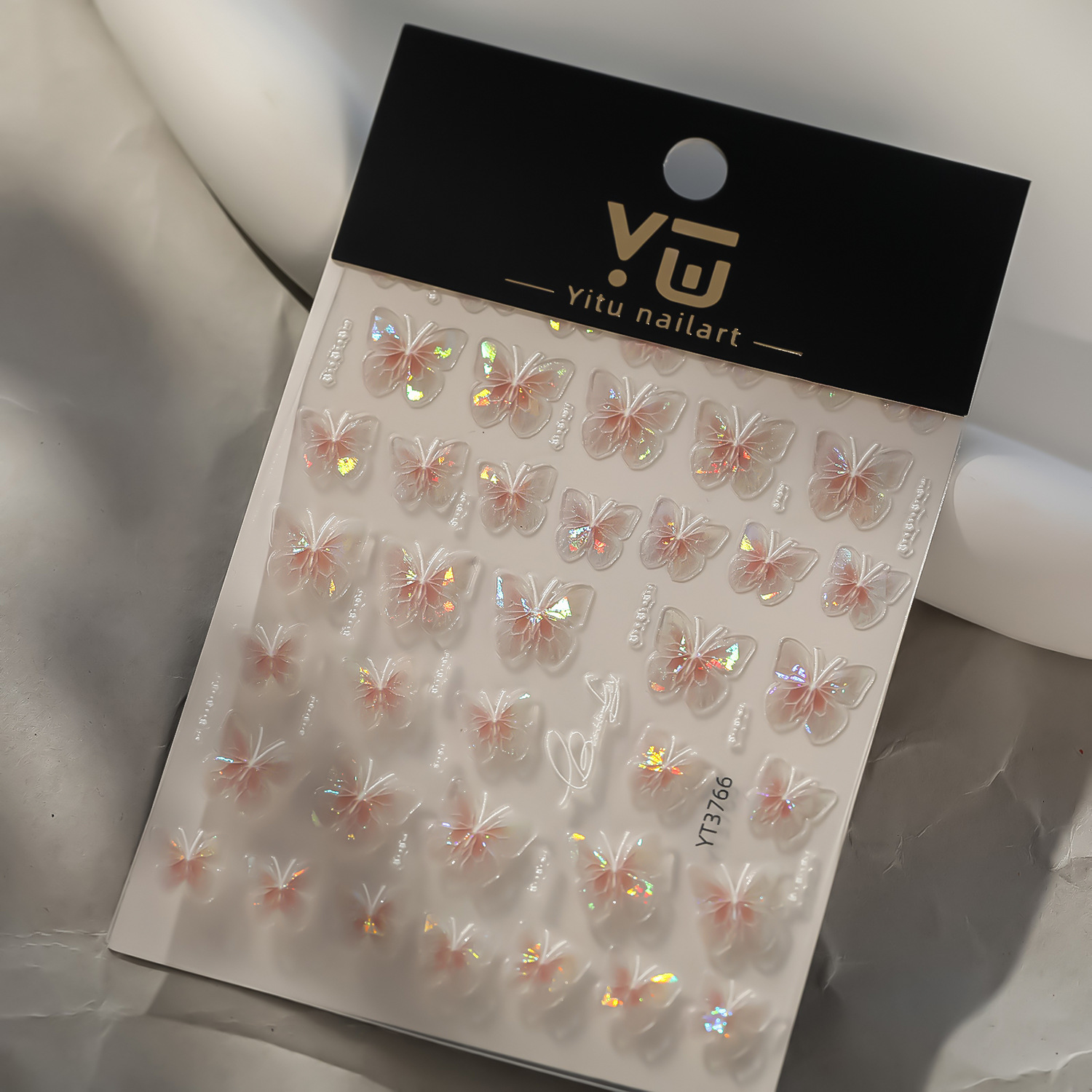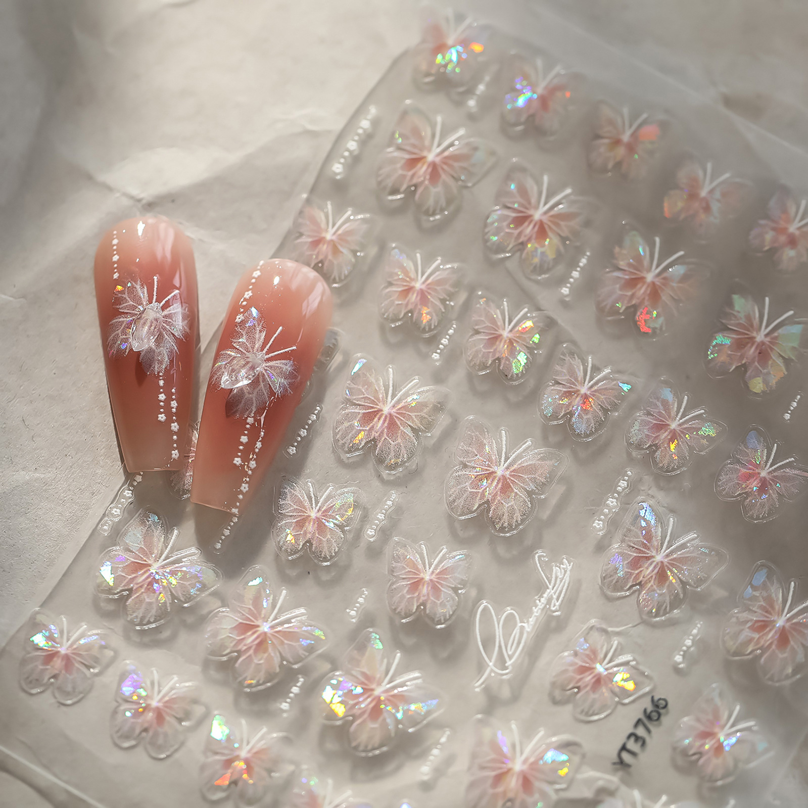 그라디언트 조커 쉘 라이트 판타지 나비 네일 아트 스티커 플래시 아이스 크리스탈 릴리프 네일 백 접착 스티커 도매