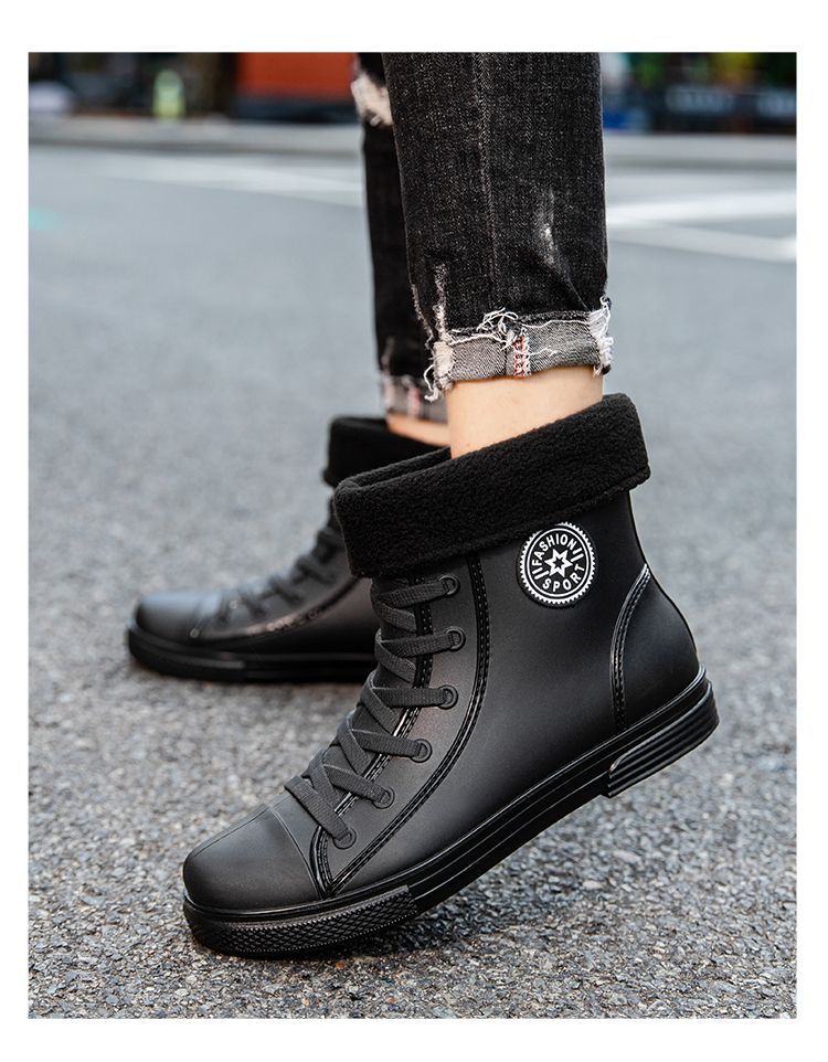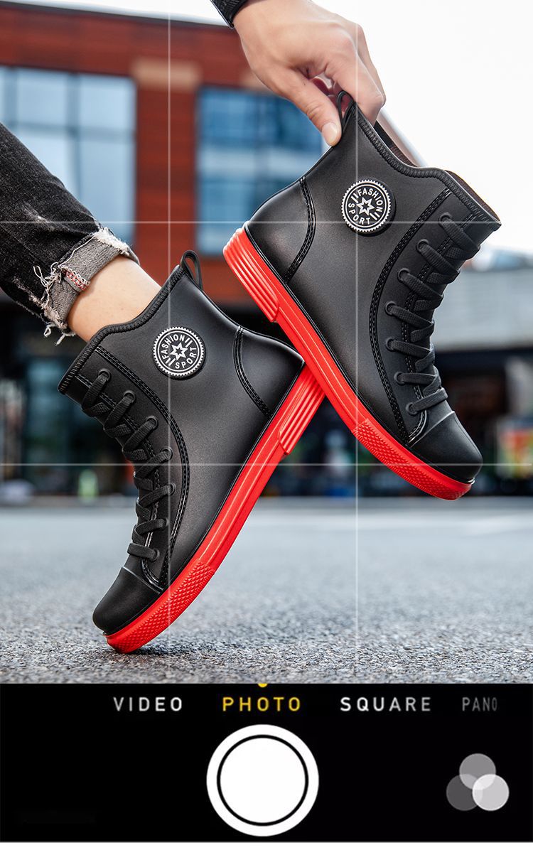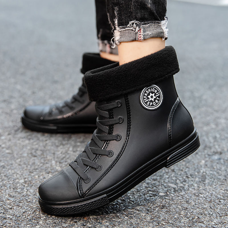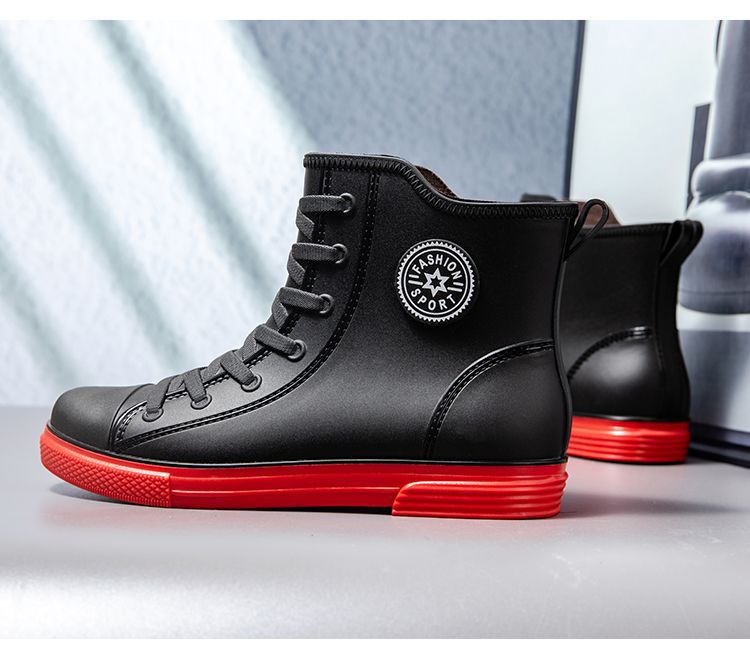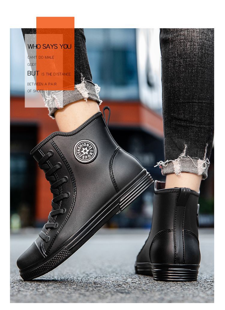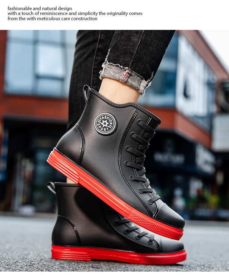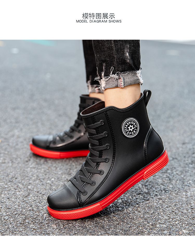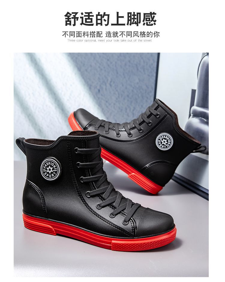 남성용 방수 레인부츠, 미끄럼 방지 숏부츠, 패셔너블한 인기 한국 스타일 학생 캐주얼 도매, 키높이 미끄럼 방지스토어 가기