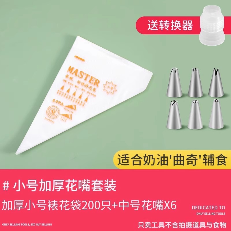 • [두껍고 깨지지 않음] 파이핑백 200개 + 스테인리스 파이핑팁 7종세트