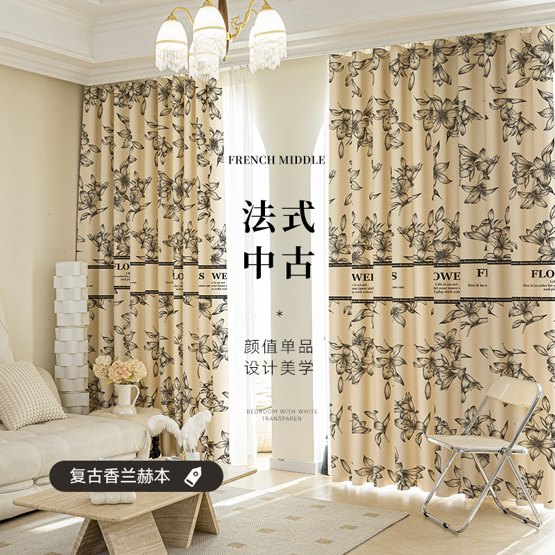 2025년 신형 프렌치 라이트 럭셔리 커튼, 빛 차단, 무타공 설치, 신축봉 포함, 침실 및 거실용 완전 세트