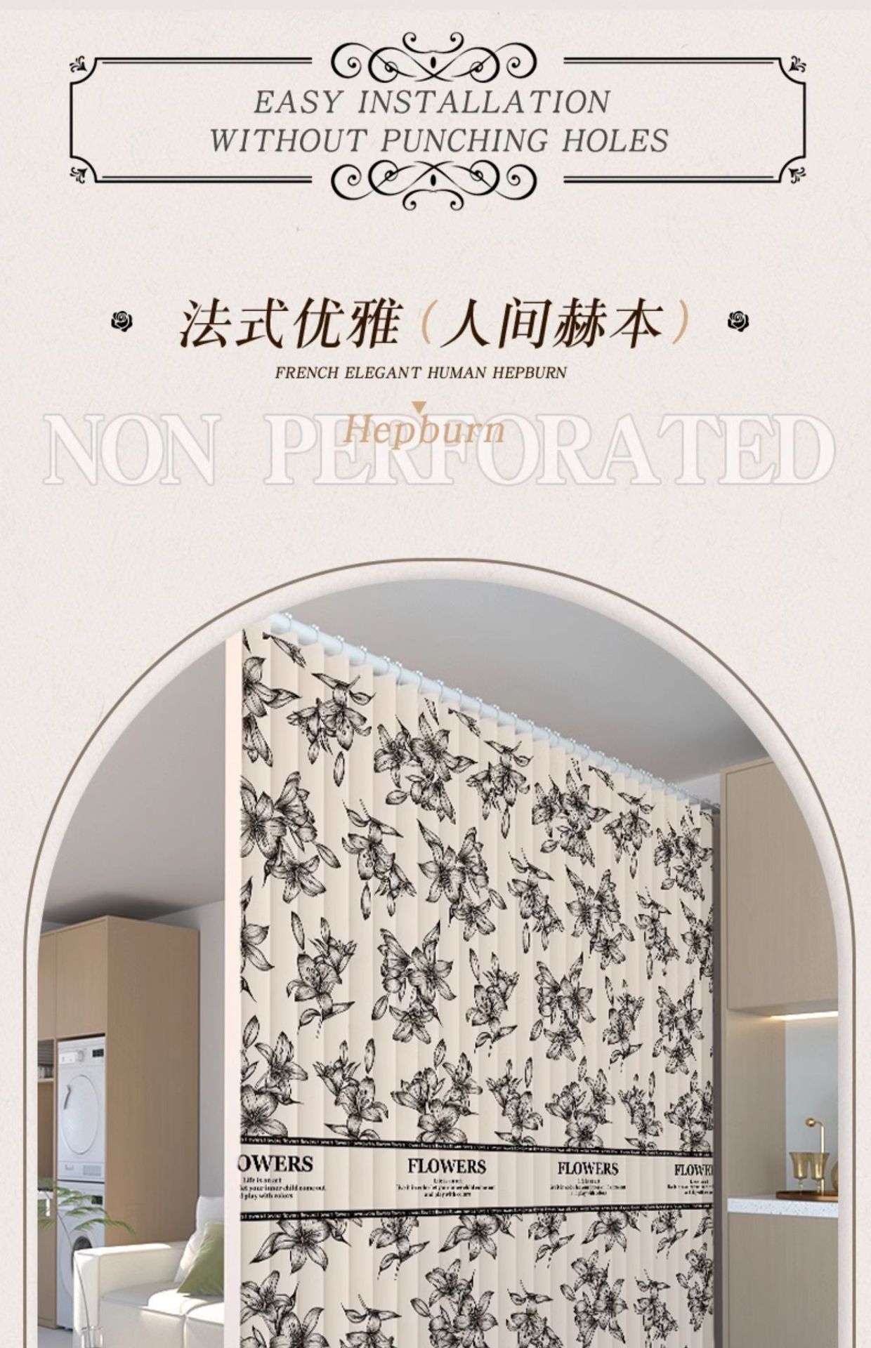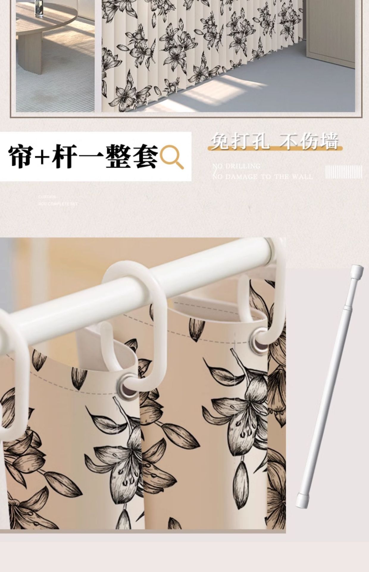 2025년 신형 프렌치 라이트 럭셔리 커튼, 빛 차단, 무타공 설치, 신축봉 포함, 침실 및 거실용 완전 세트스토어 가기