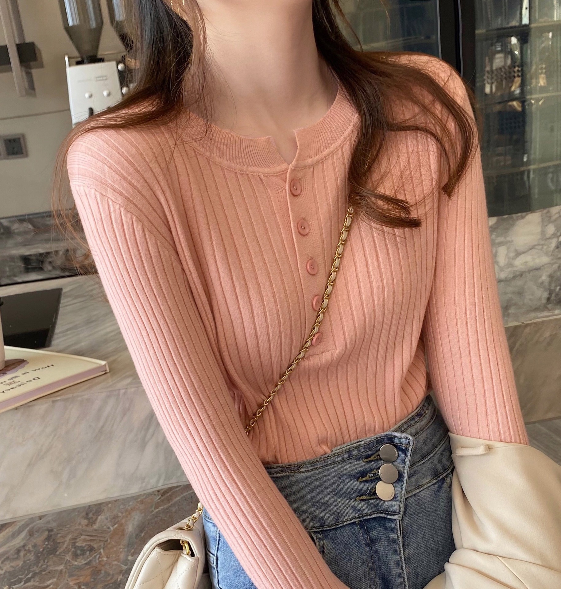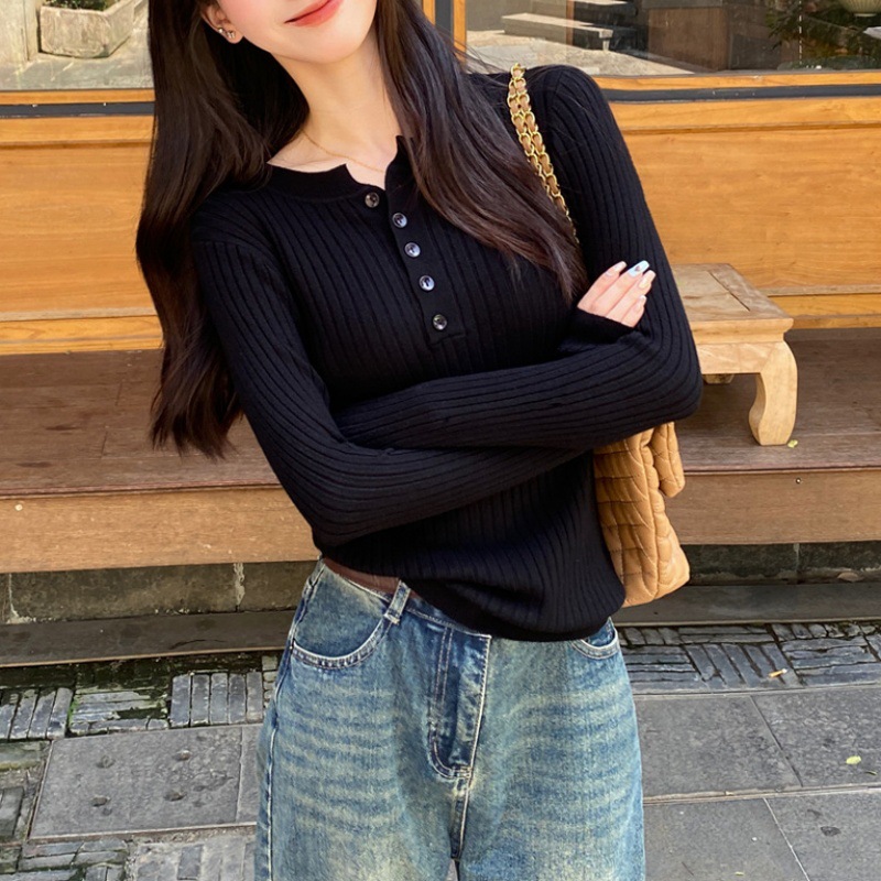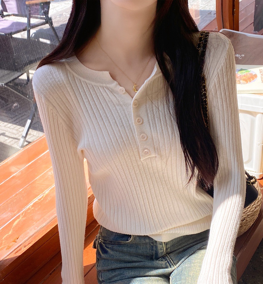 2025년 봄 가을 여성용 베이스 레이어 신작 인기 스타일 브이넥 긴팔 스웨터 슬림핏 가을 스타일 탑스토어 가기