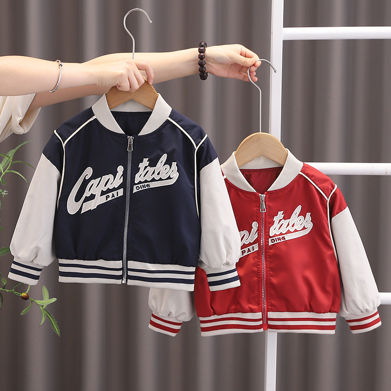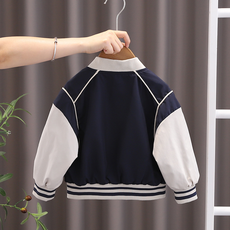 남자 아기 가을 새 소년의 크루 넥 컬러 블록 편지 인쇄 긴 소매 카디건 재킷 어린이 캐주얼 재킷스토어 가기
