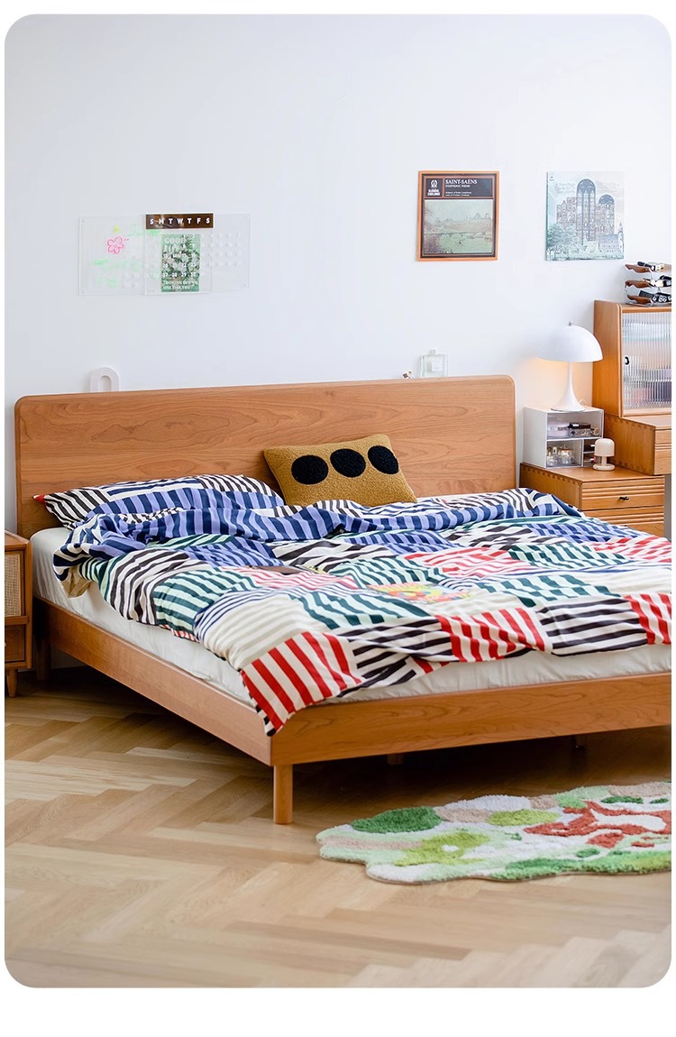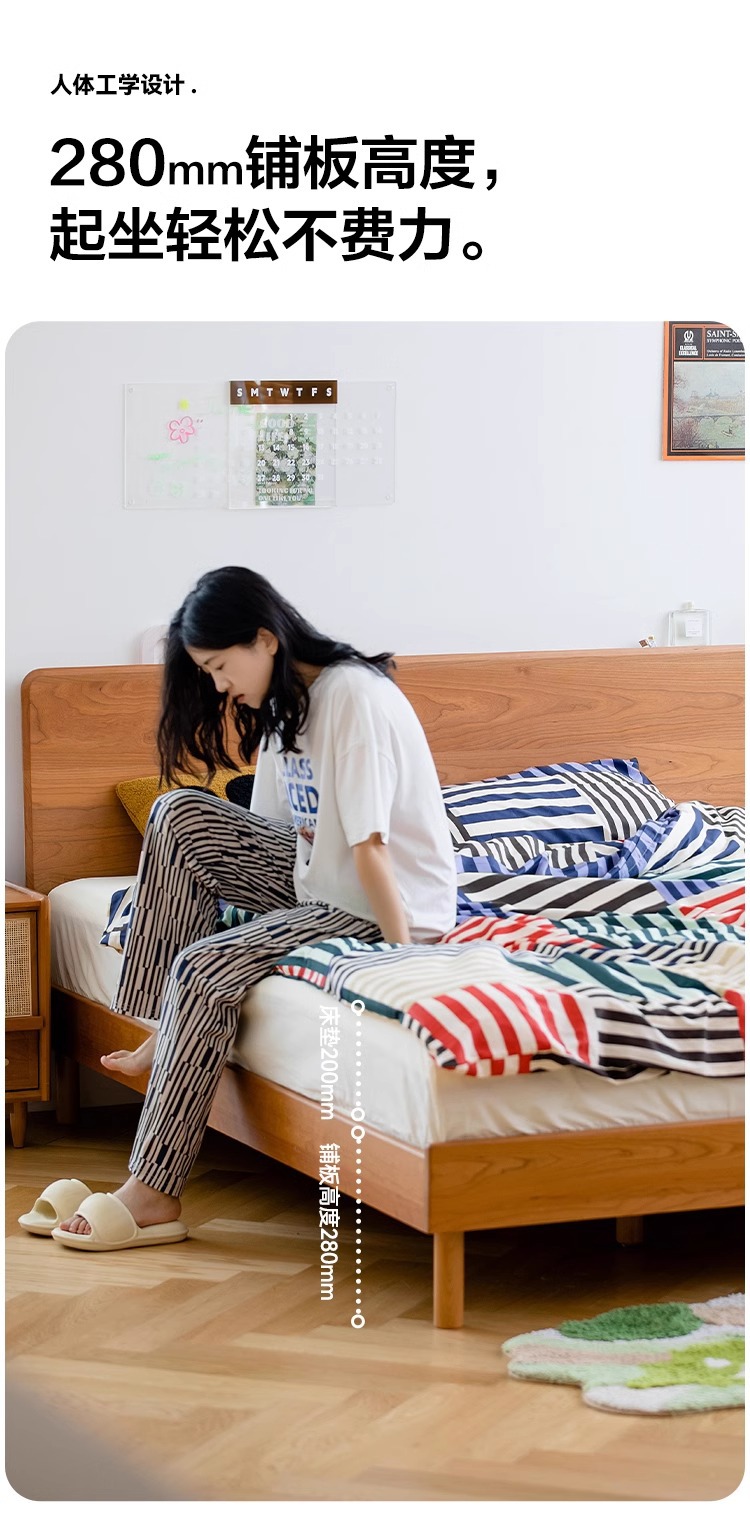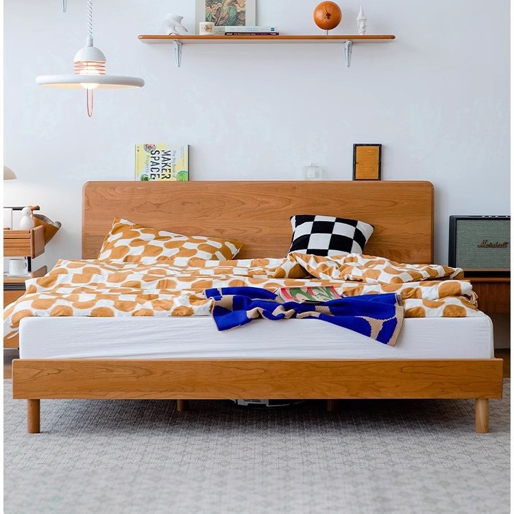 치안 솔리드 우드 베드 체리 우드 1.5m 침대 노르딕 1 m 2 싱글 침대 1 m 8 가구 더블 침대 일본식 우드 침대스토어 가기