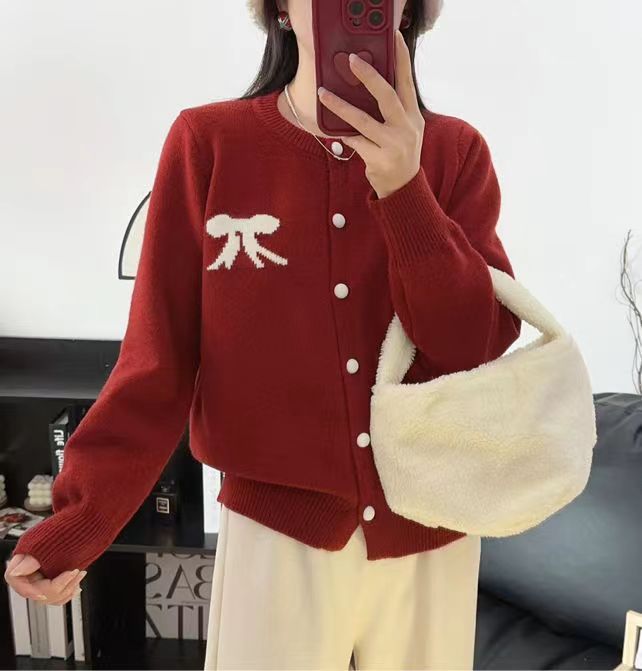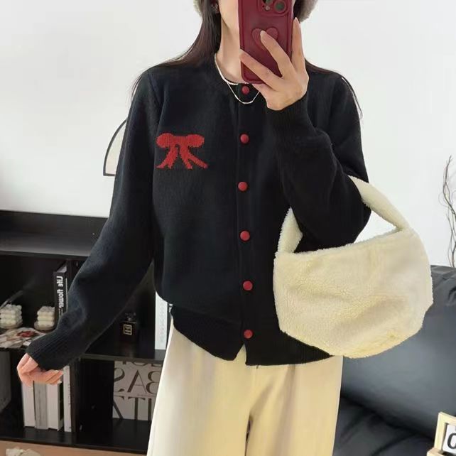 [양털] 솔리드 컬러 캐시미어 가디건 여성 루즈 라운드 넥 스웨터 울 스웨터 짧은 코트 두꺼운 가을, 겨울스토어 가기