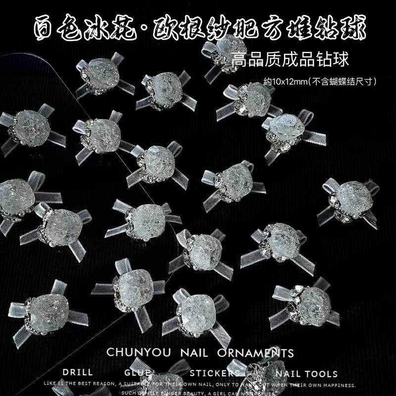 오간자 활 분쇄 얼음 꽃 더미 다이아몬드 네일 아트 쥬얼리 화이트 제이드 투명 컬러 캔디 비둘기 계란 네일 드릴스토어 가기