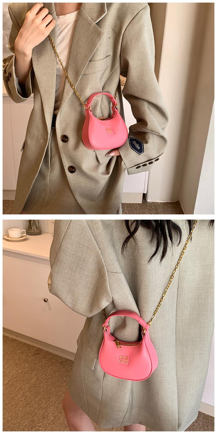 2024 새로운 간단한 미니 어린이 소녀 핸드 헬드 체인 대각선 초승달 액세서리 가죽 질감 가방 도매스토어 가기