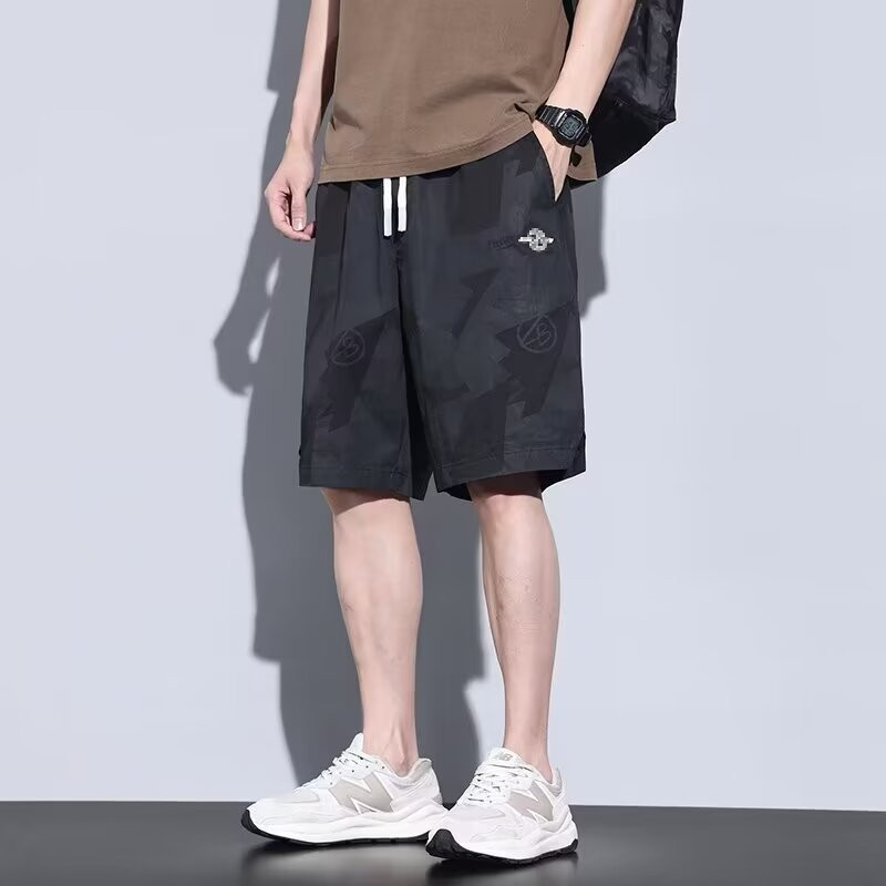 2024 새로운 위장 작업 반바지 남성 여름 얇은 핫 아이스 실크 스포츠 미국 패션 브랜드 5 점 바지