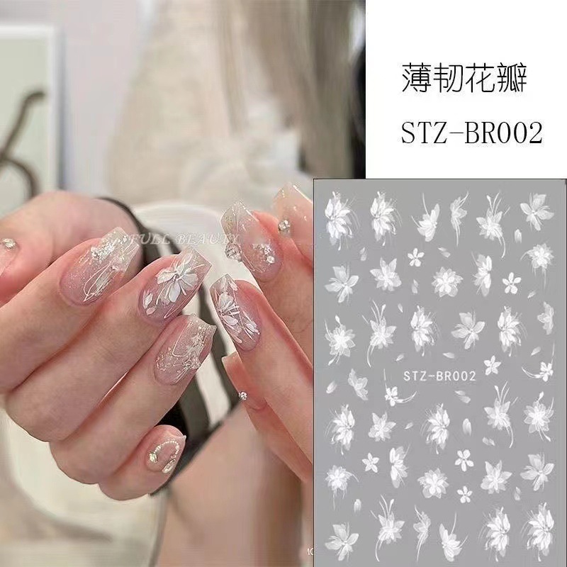 Net Celebrous New White Ice Flower Camellia 네일 아트 스티커 폭발성 사쿠라 꽃 스티커 작은 패턴 접착 네일 스티커