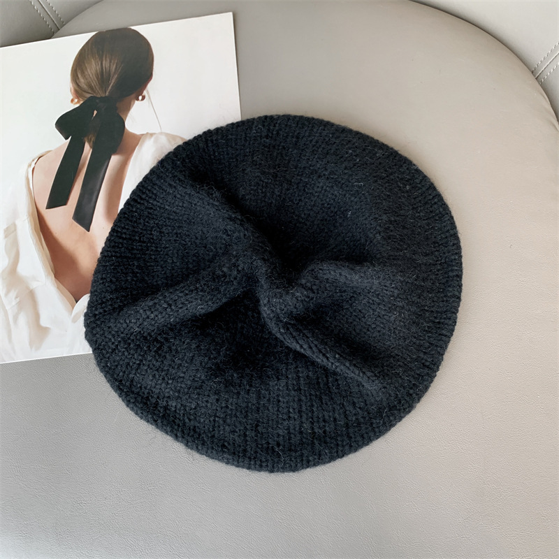 니트 빅 브림 울 베레 여성의 가을 및 겨울 빅 헤드 쇼 얼굴 작은 회색 빈티지 올 매치 클라우드 페인터 모자스토어 가기