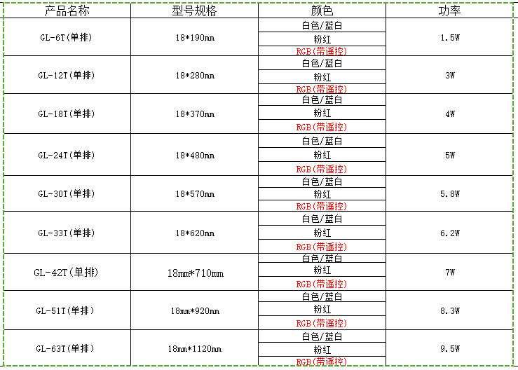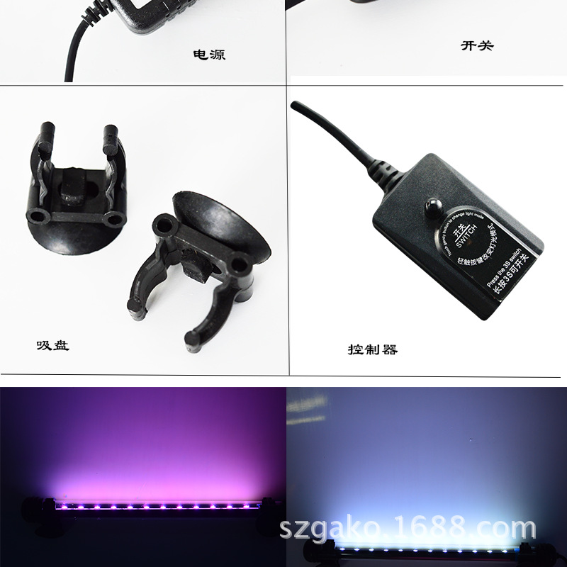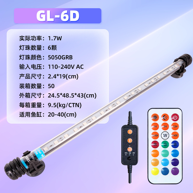 • GL-6D(6개의 RGB 램프 비드, 길이 19cm, 무게 190g, 20-40cm 수조에 적합) 1.7W 잠수정 조명