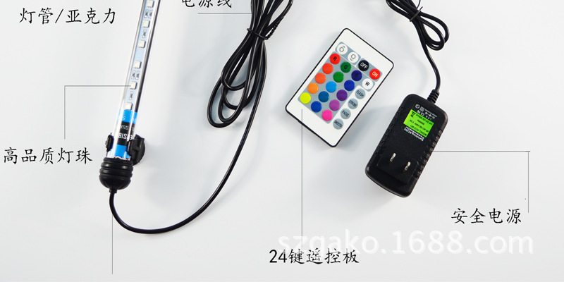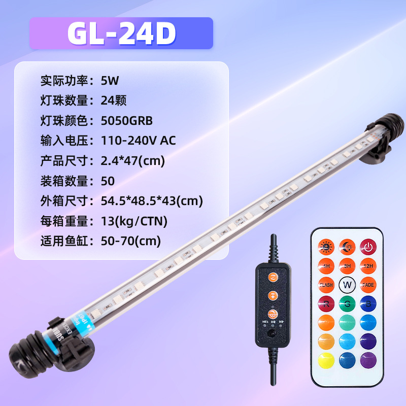 • GL-24D (RGB 램프 비즈 24개, 길이 47cm, 무게 260g, 50-70cm 수조에 적합) 5W-다이빙 라이트