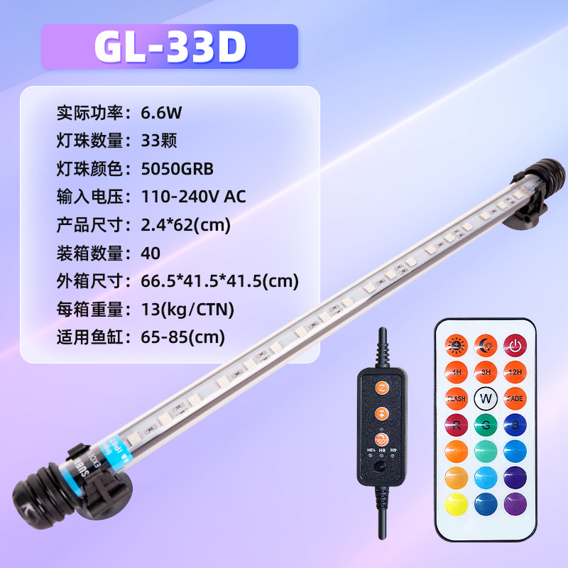 • GL-33D (RGB 램프 비드 33개, 길이 62cm, 무게 325g, 65-85cm 수조에 적합) 6.6W-수중 조명