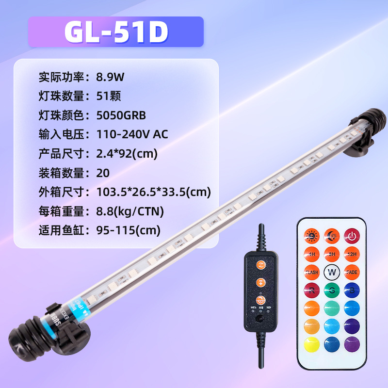 • GL-51D (RGB 램프 비드 51개, 길이 92cm, 무게 440g, 95-115cm 수조에 적합) 8.9W-수중 조명