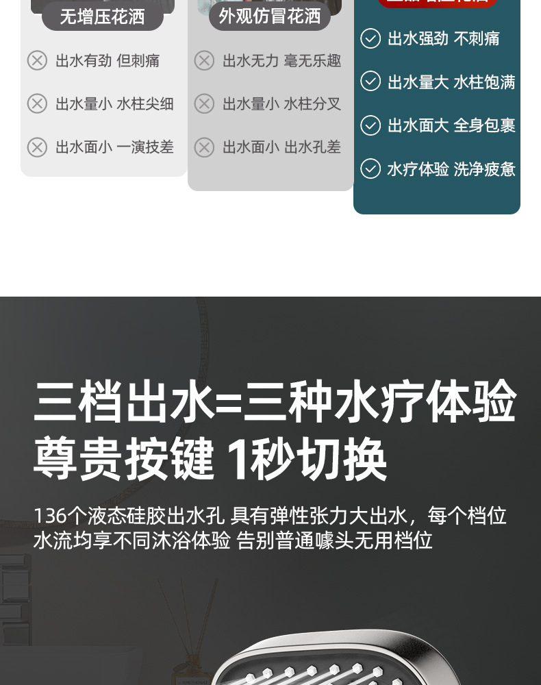 • [실버] 사각 세로구멍 3단 샤워기 + 실버 1.5m호스 + 실버 펀치프리 베이스