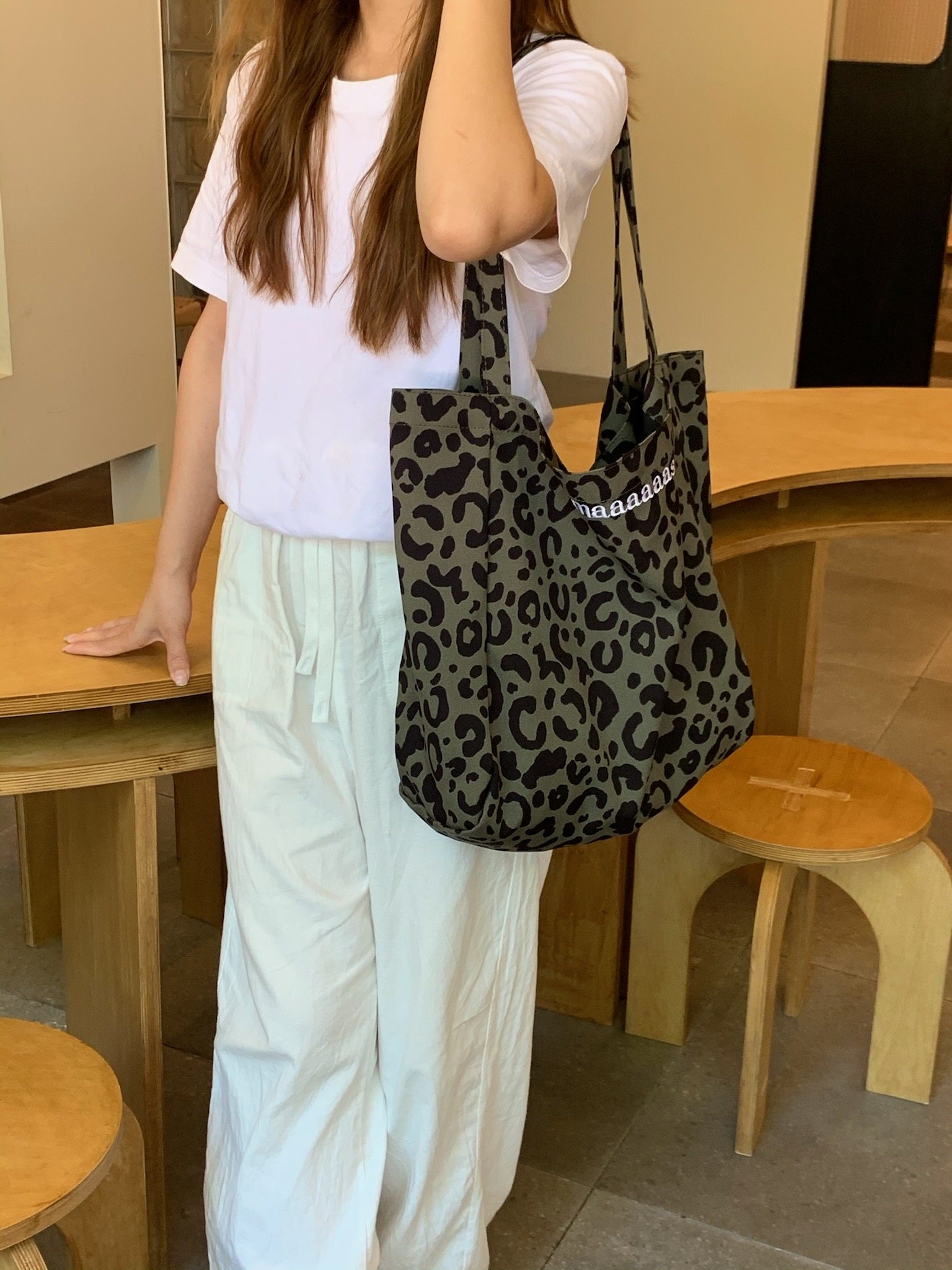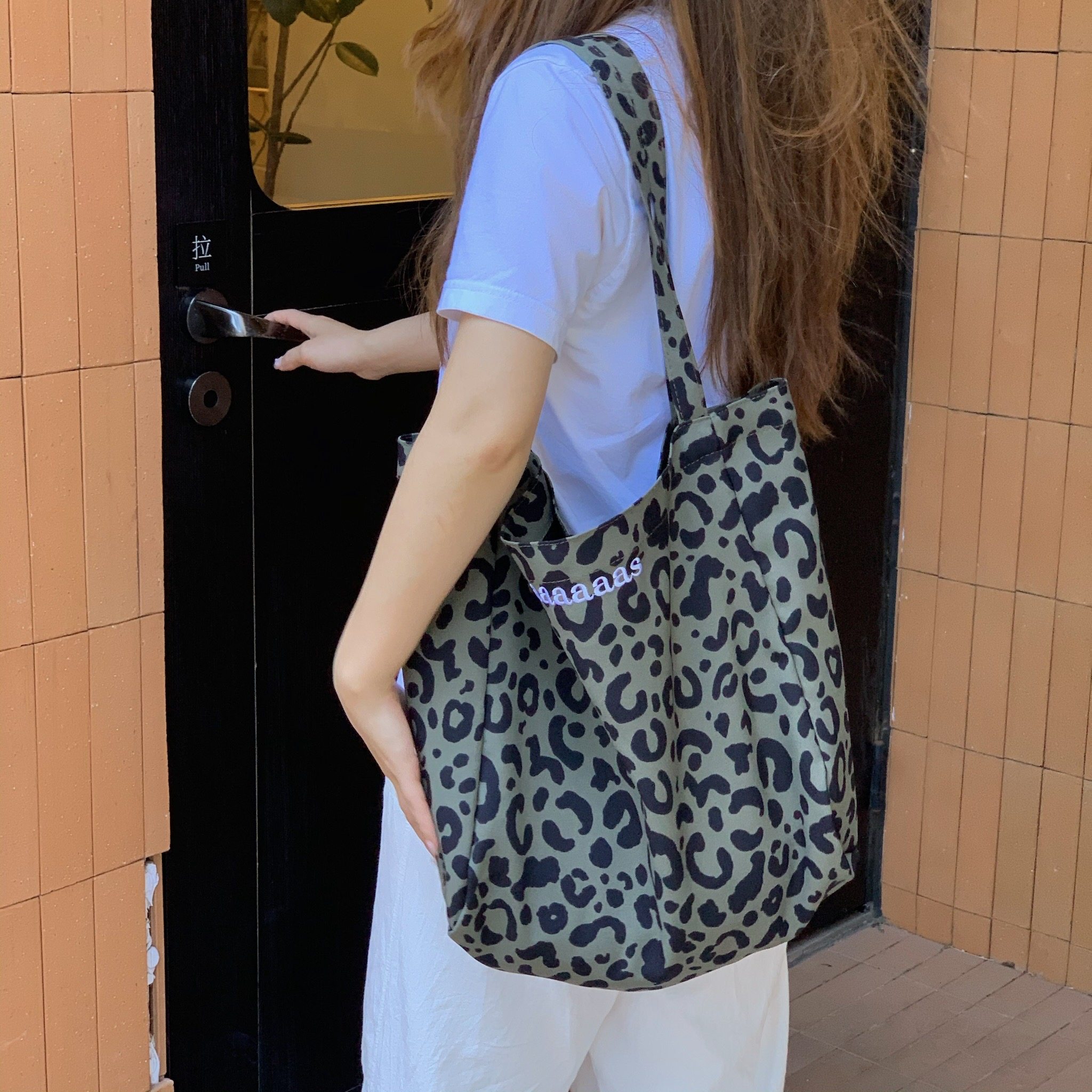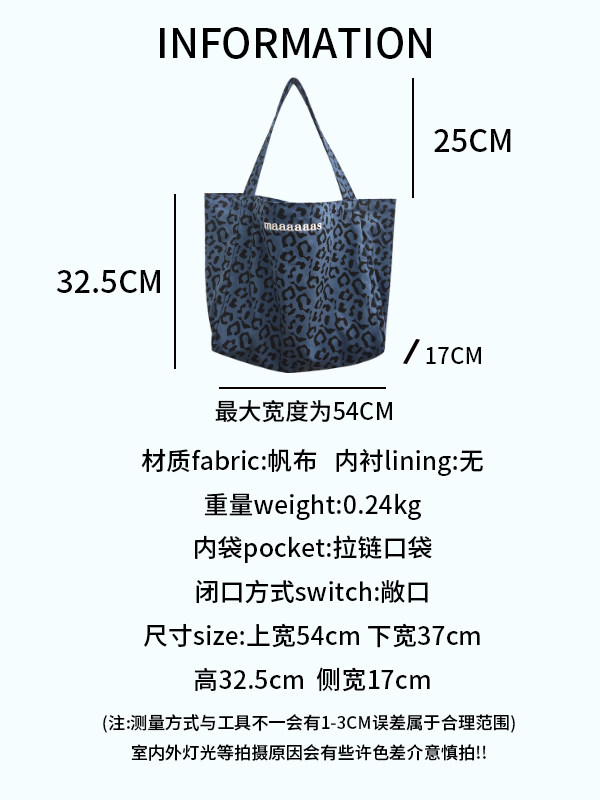 여름 새로운 빈티지 레오파드 무늬 한국 스타일 대용량 어깨 캔버스 가방 편지 자수 토트 백