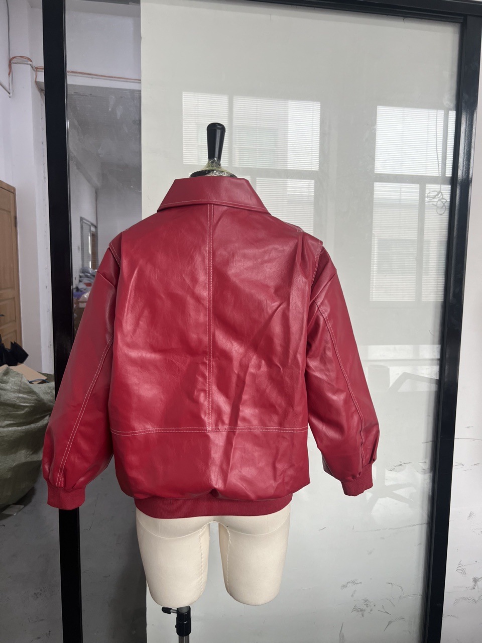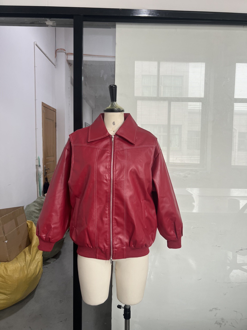 • 라펠 지퍼 긴팔 재킷 - 레드