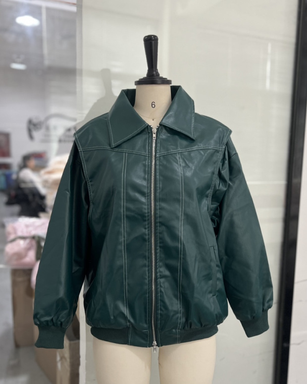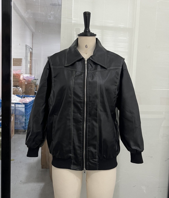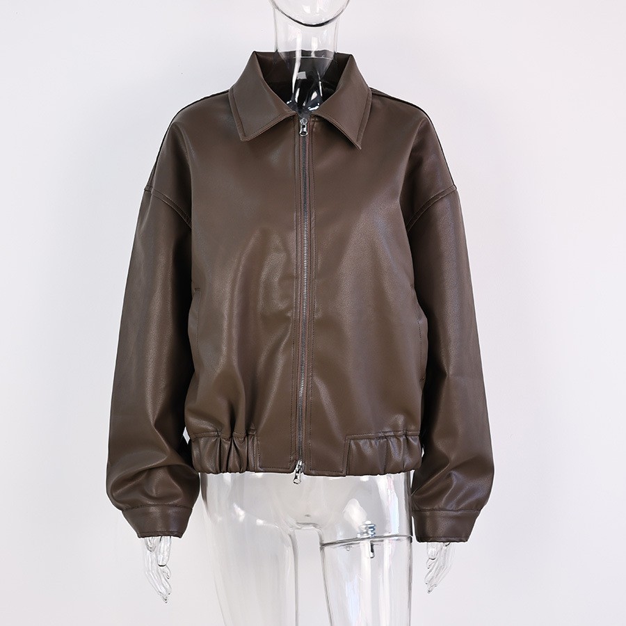 국경 간 재고 아마존 가을과 겨울 여성 패션 느슨한 옷깃 긴 소매 레트로 미국 재킷 지퍼 코트