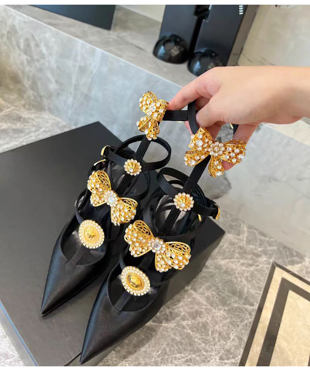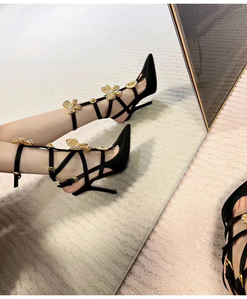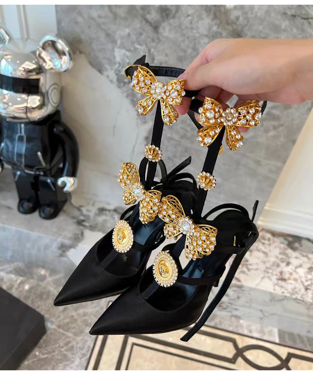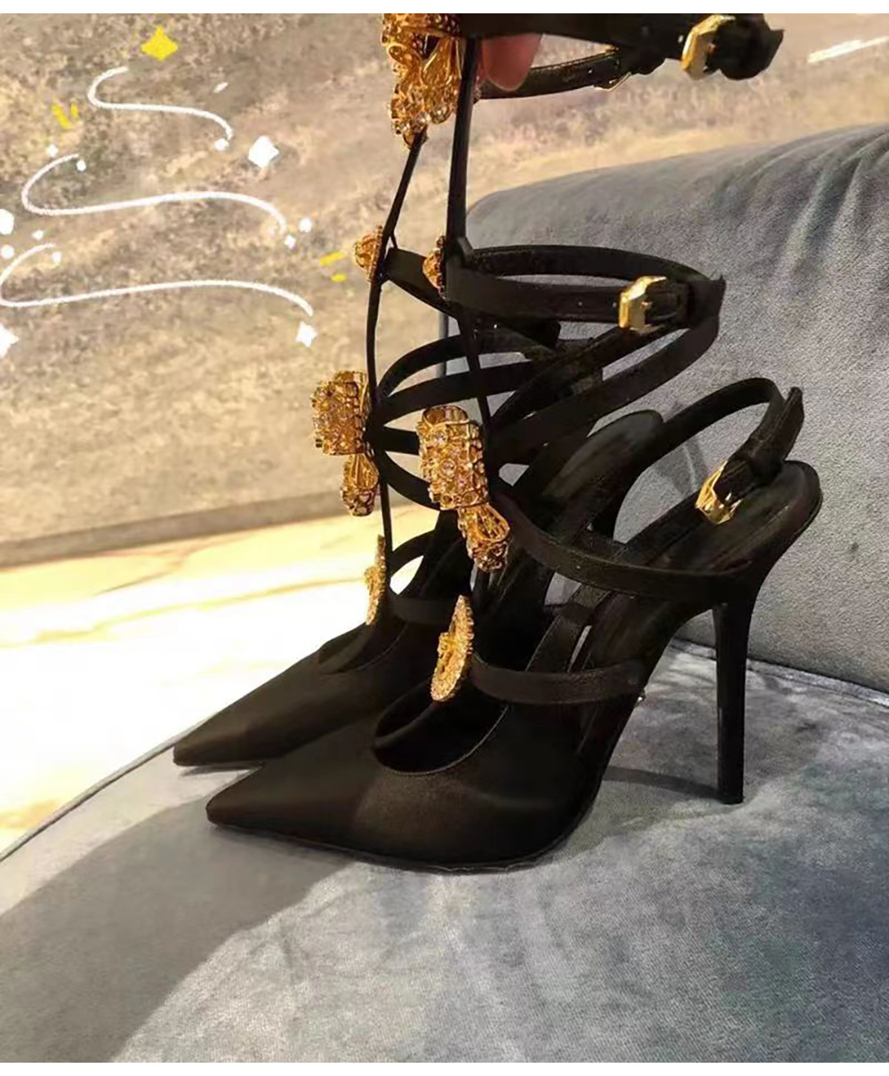 유럽과 미국 스타일의 섹시한 하이힐 링 버클과 뾰족한 발가락 여성용 슈퍼 하이힐 레트로 2024 여름 새로운 실크 샌들 스틸레토 힐스토어 가기