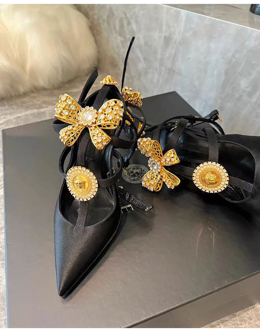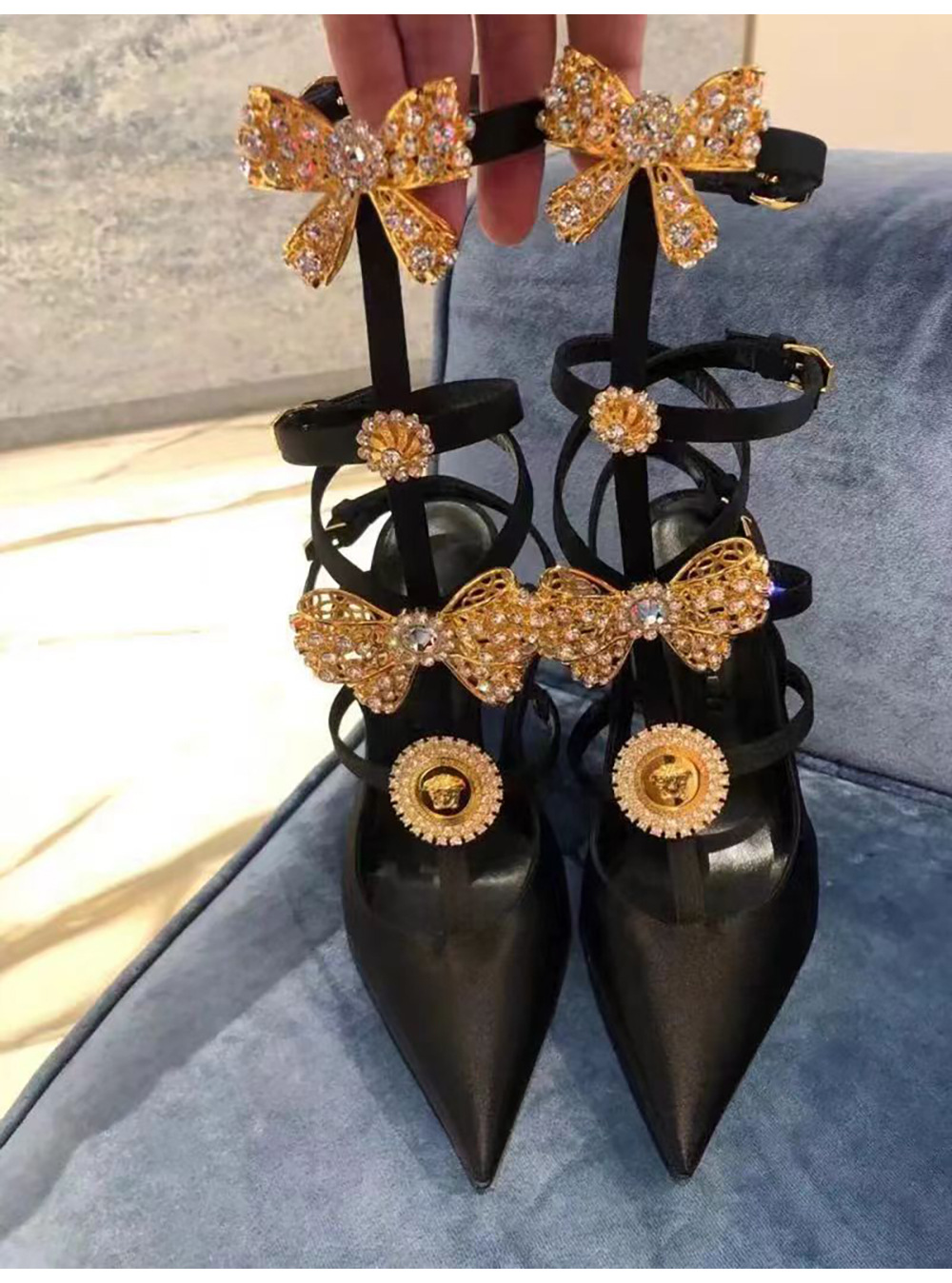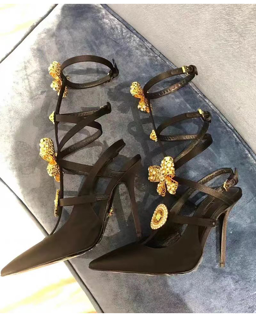 유럽과 미국 스타일의 섹시한 하이힐 링 버클과 뾰족한 발가락 여성용 슈퍼 하이힐 레트로 2024 여름 새로운 실크 샌들 스틸레토 힐스토어 가기