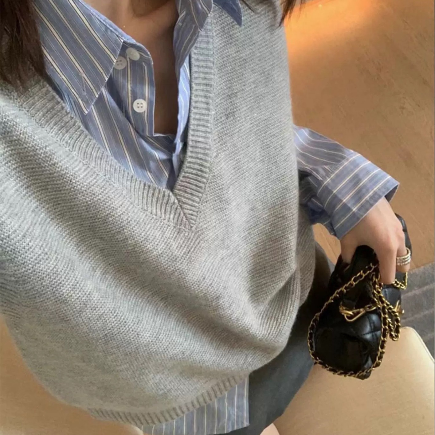 25 봄과 가을 새로운 스타일 다목적 소모사 울 V 넥 조끼 슬리밍 여성 니트 민소매 조끼 양복 조끼