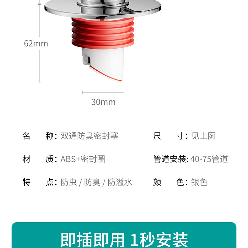 • [바닥배수구/파이프] 싱글패스★냄새 방지 밀봉 플러그(하수관 1개 연결)