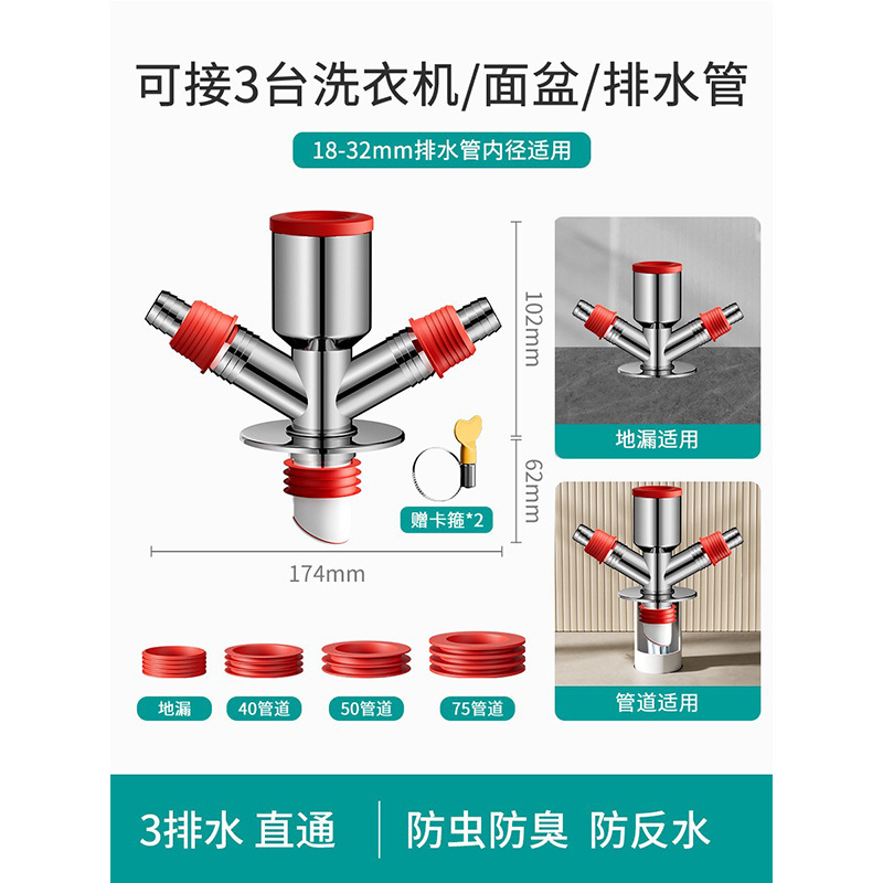 발코니 하수관 3 자 세탁기 배수관 바닥 배수 공동 하수도 3 자 분리기 탈취제 바닥 배수