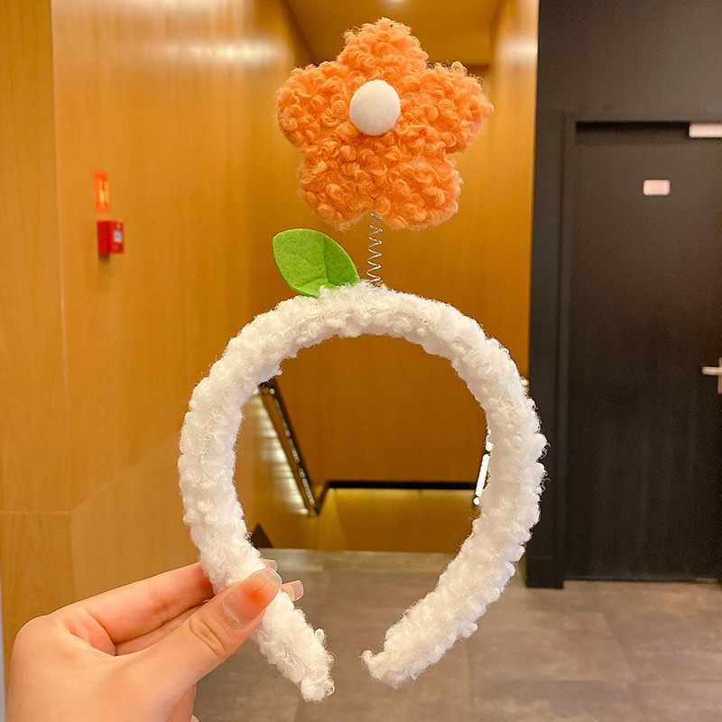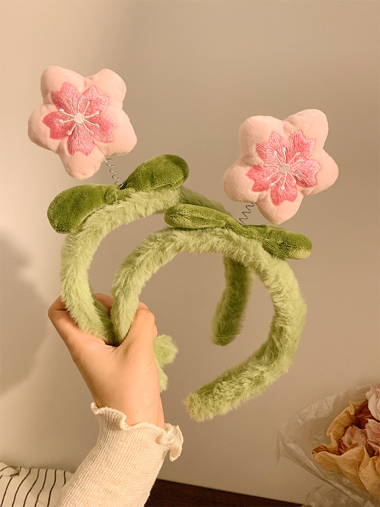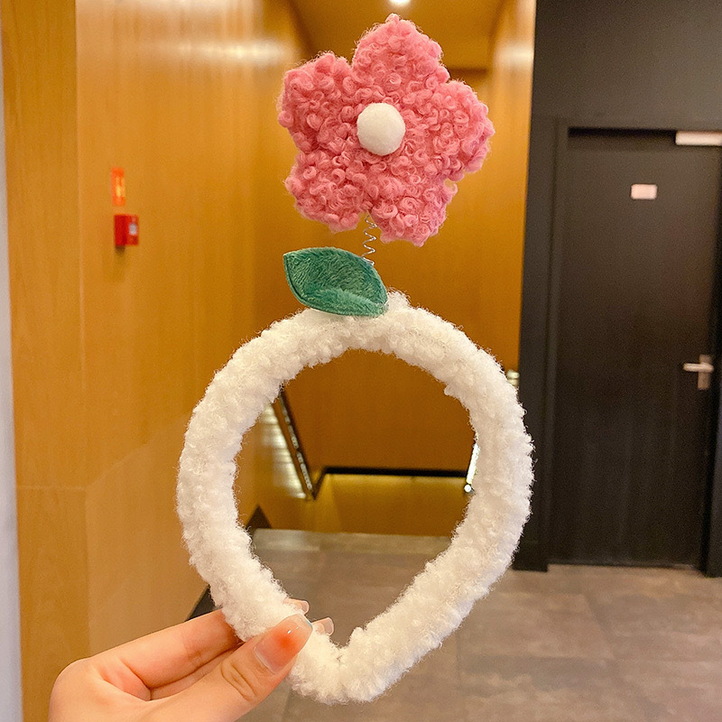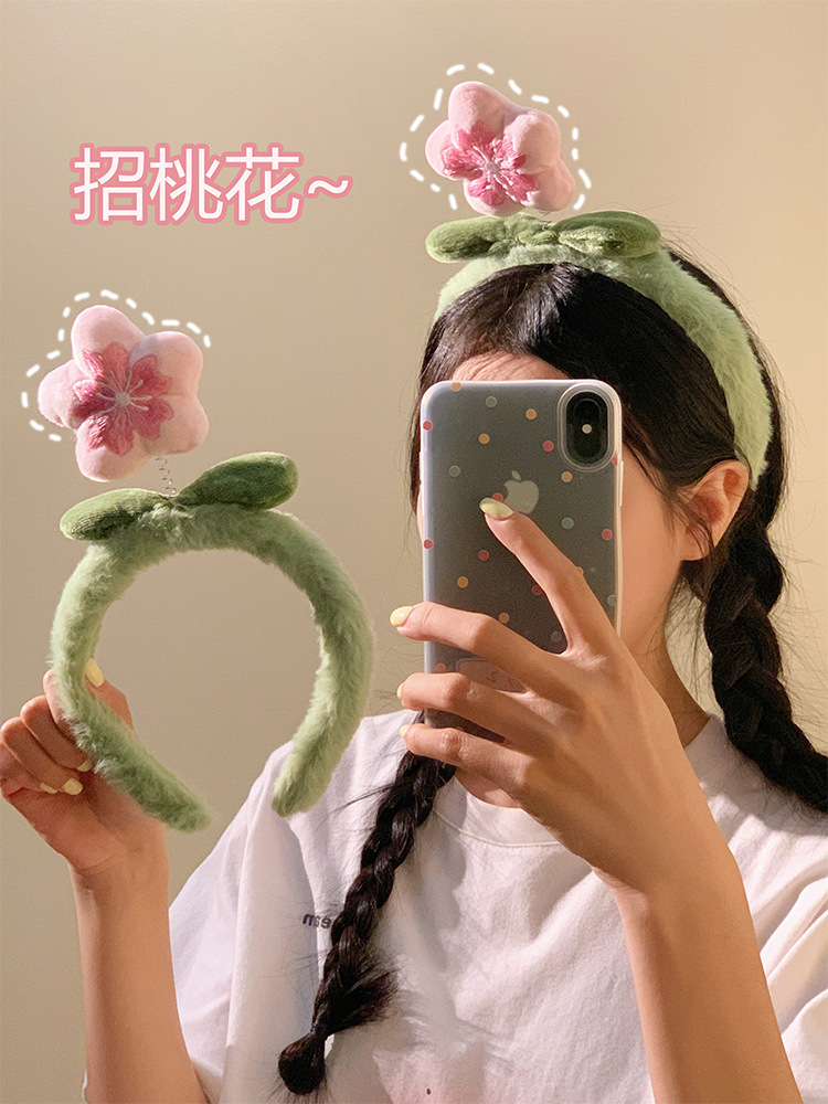 히트 복숭아 꽃 ~ 귀여운 봉제 꽃 헤어 후프 여성 만화 달콤한 헤어 카드 워시 얼굴 미끄럼 모피 헤어 후프 헤어 액세서리