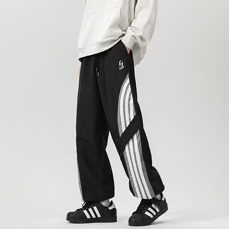 스트라이프 낙하산 기병 바지 남자 여름 얇은 미국 스타일 충전 바지 스트리트 댄스 와이드 레그 바지 빠른 건조 트렌디 브랜드 콕 바지스토어 가기