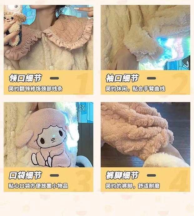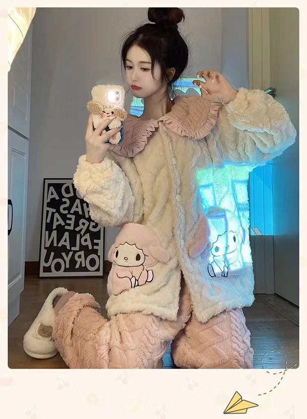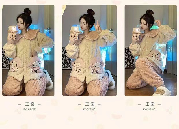 산호 양털 잠옷 여성의 봄 가을과 겨울 두꺼운 따뜻한 귀여운 플란넬 홈 옷 공주 스타일 세트 Mianyang스토어 가기
