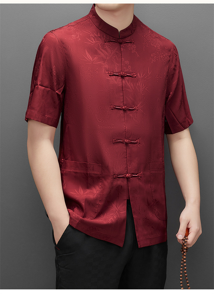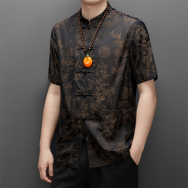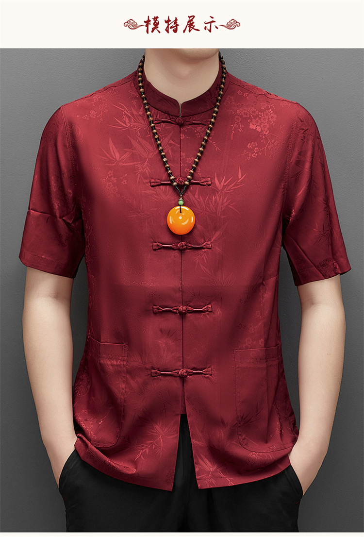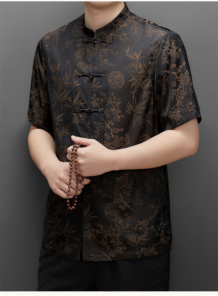 탕 세트 남성용 아이스 실크 중년 · 노인 반팔 할아버지 중국식 한푸 아빠 여름 세트 노인의 옷 아빠스토어 가기