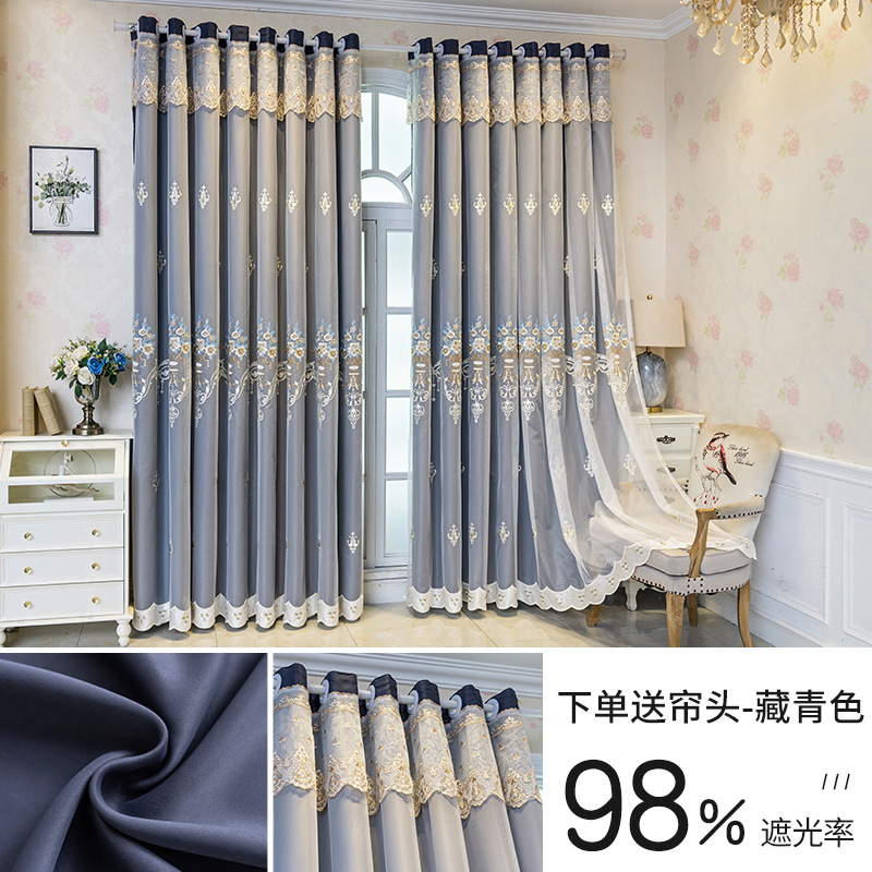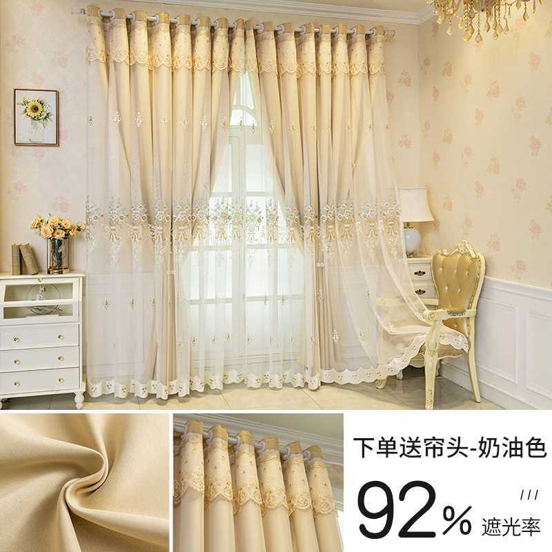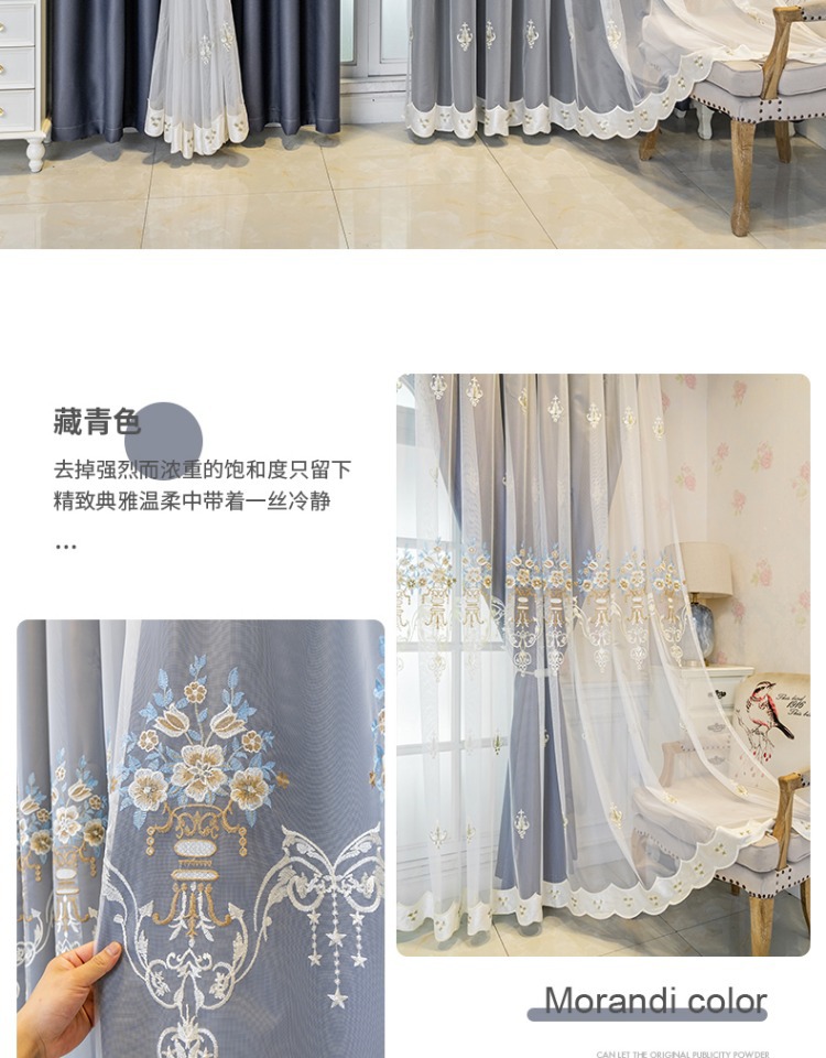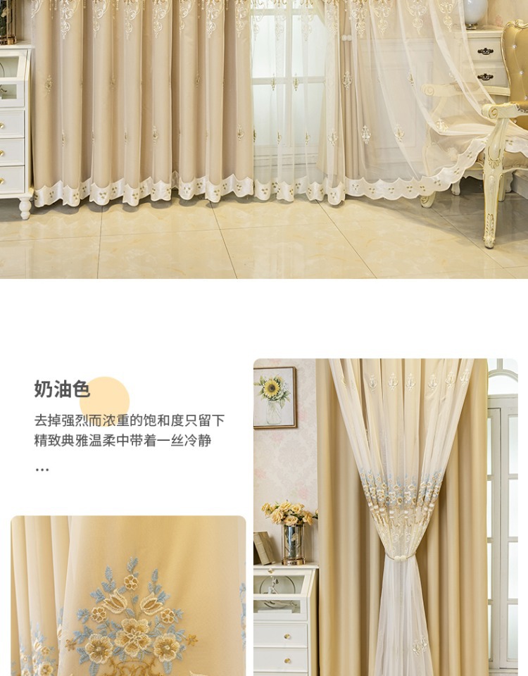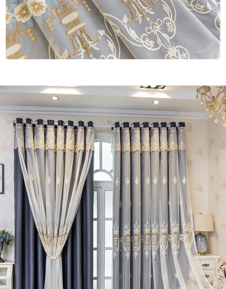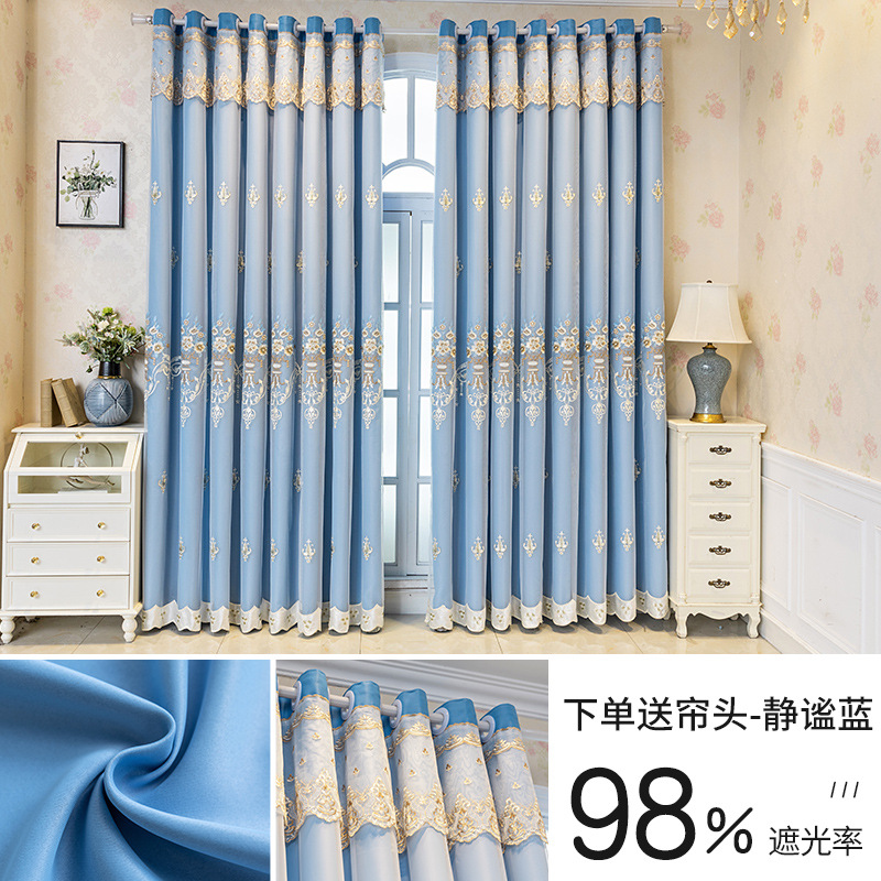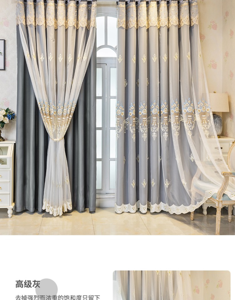 간단한 유럽 전체 음영 커튼 마감 침실 새로운 더블 레이어 자수 거즈 통합 거실 단열 태양 보호 음영 천스토어 가기
