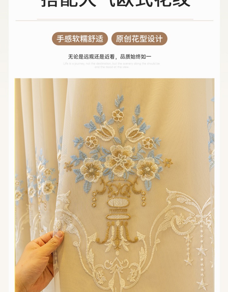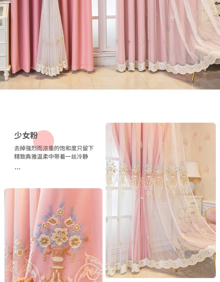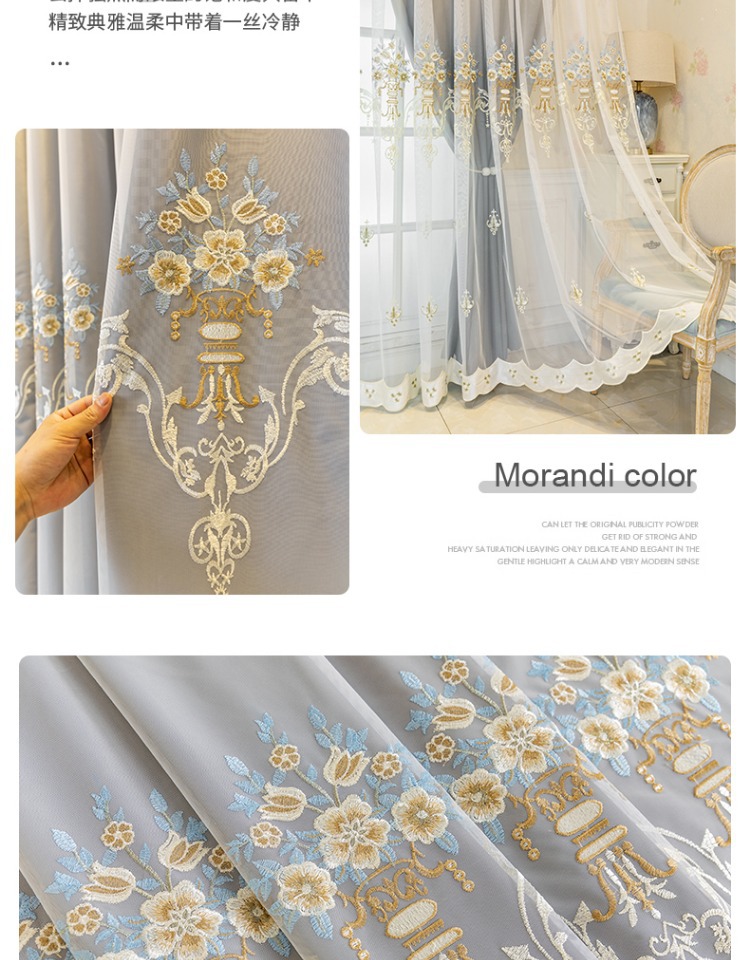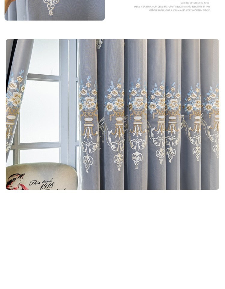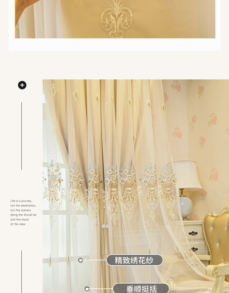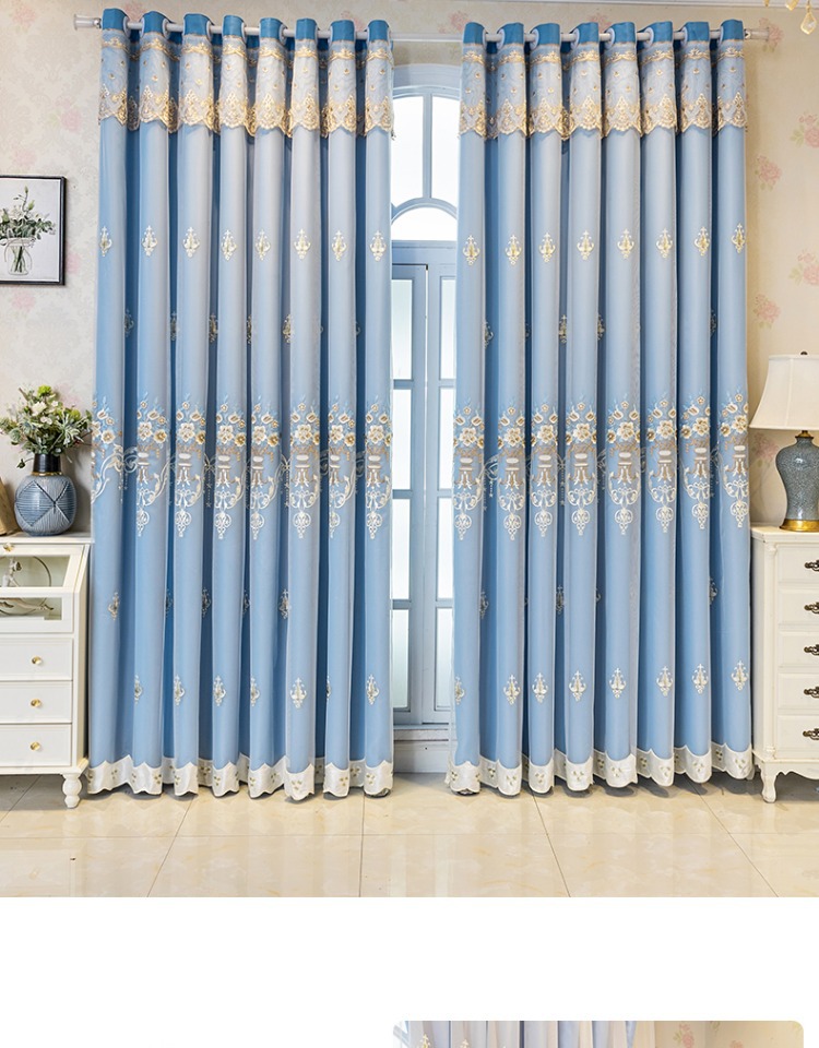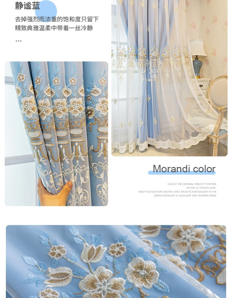간단한 유럽 전체 음영 커튼 마감 침실 새로운 더블 레이어 자수 거즈 통합 거실 단열 태양 보호 음영 천스토어 가기
