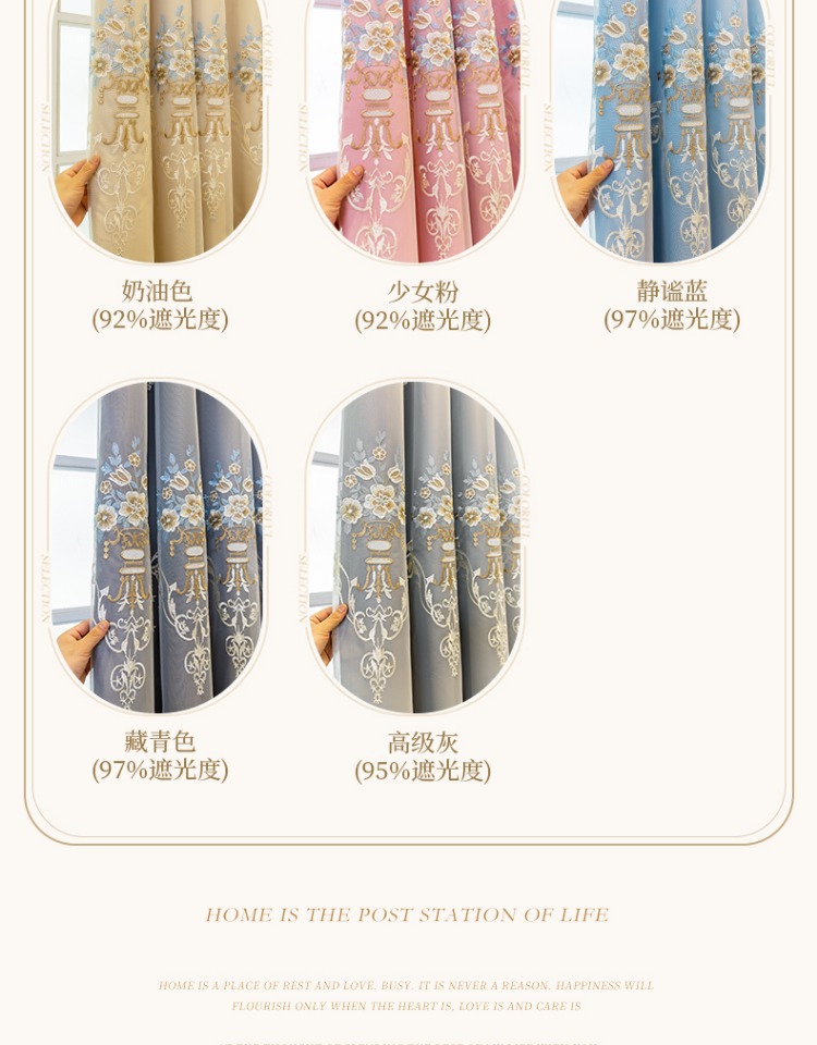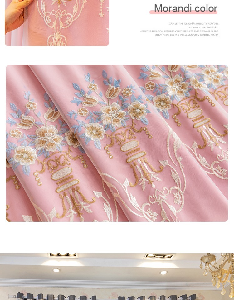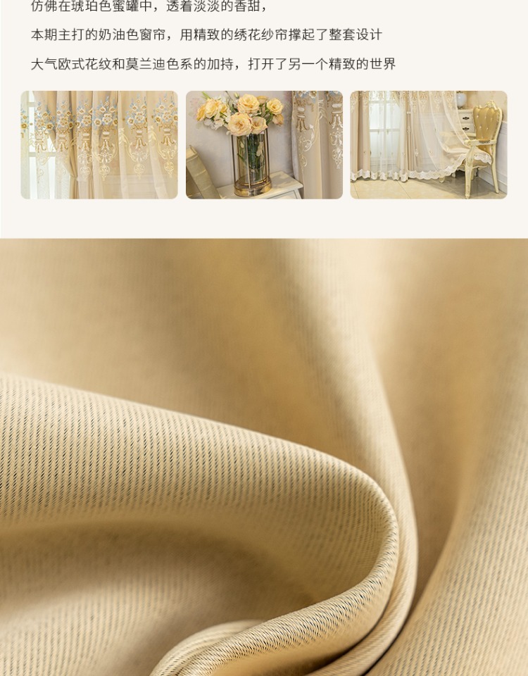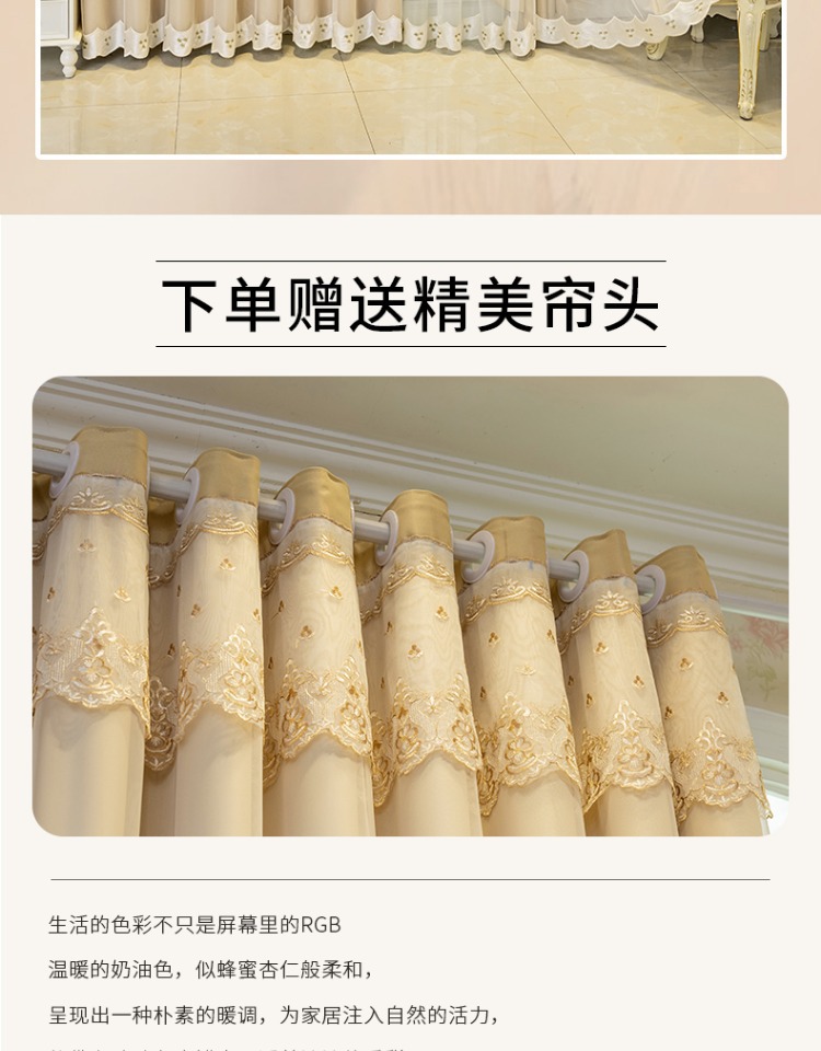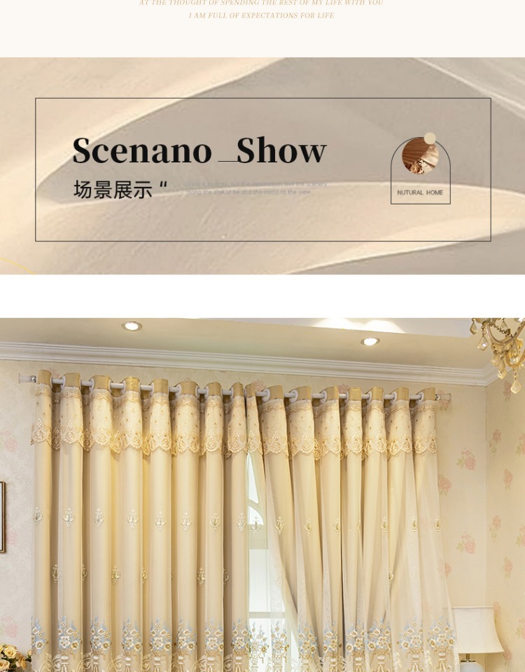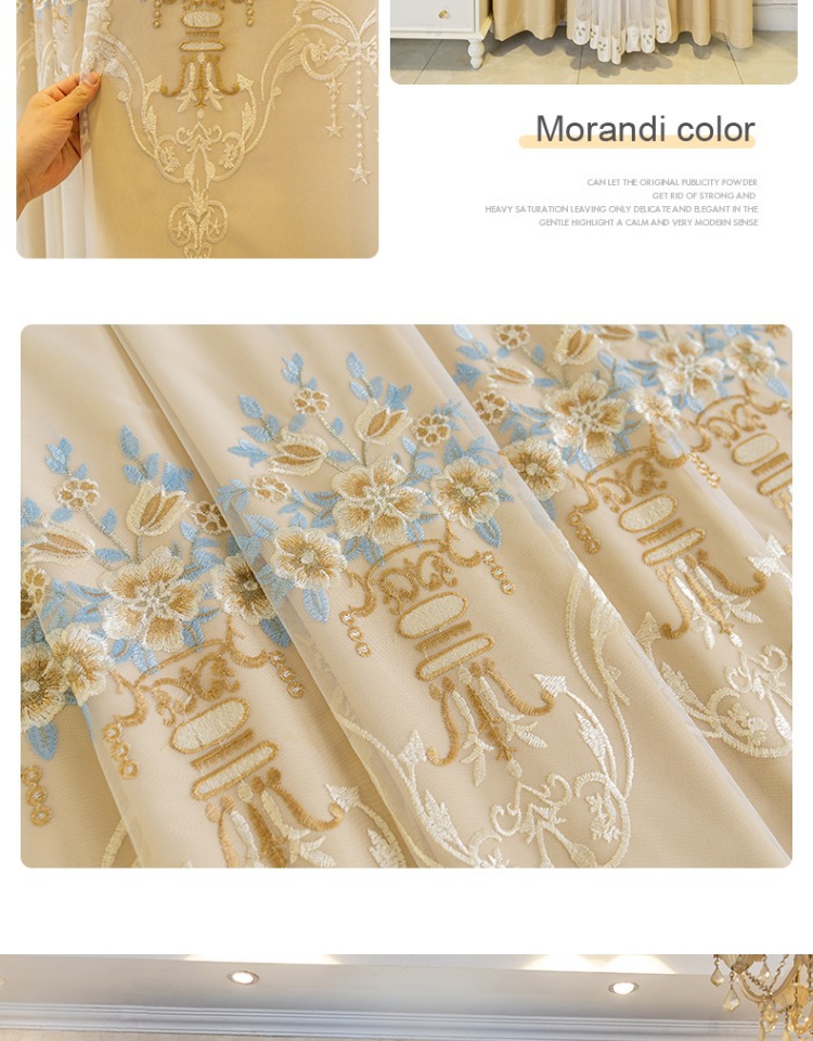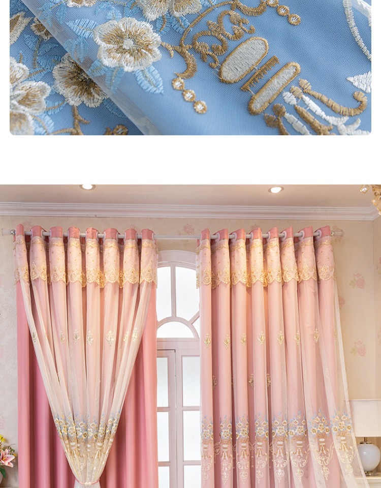 간단한 유럽 전체 음영 커튼 마감 침실 새로운 더블 레이어 자수 거즈 통합 거실 단열 태양 보호 음영 천스토어 가기