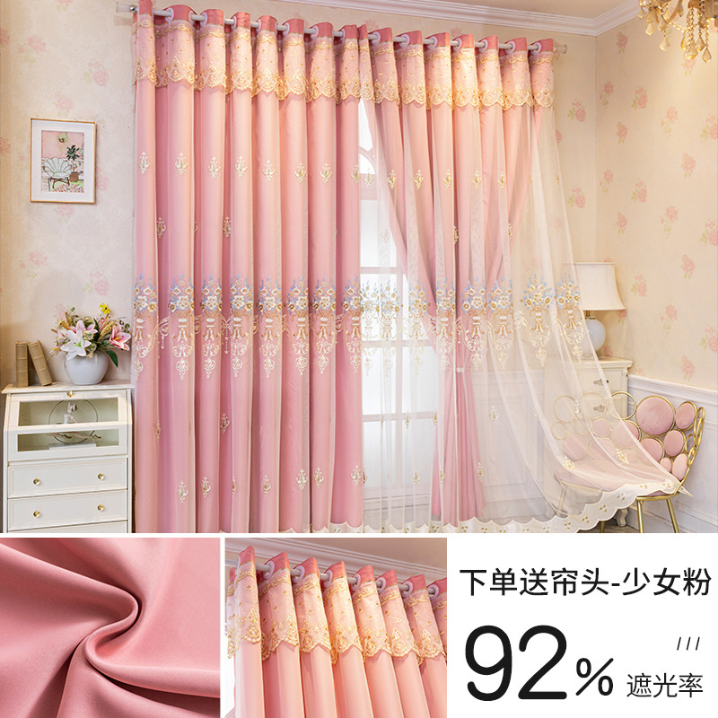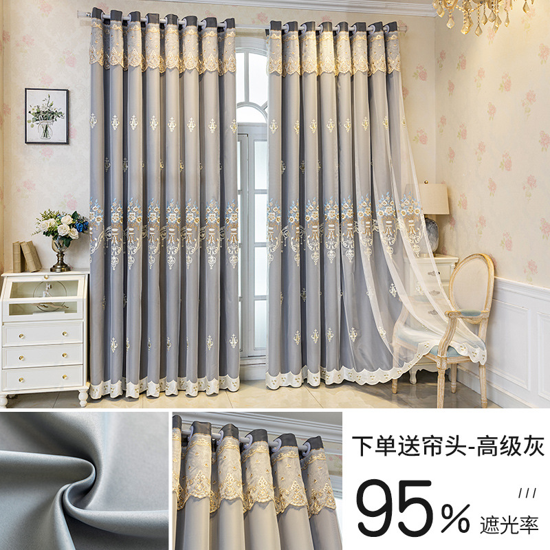 간단한 유럽 전체 음영 커튼 마감 침실 새로운 더블 레이어 자수 거즈 통합 거실 단열 태양 보호 음영 천