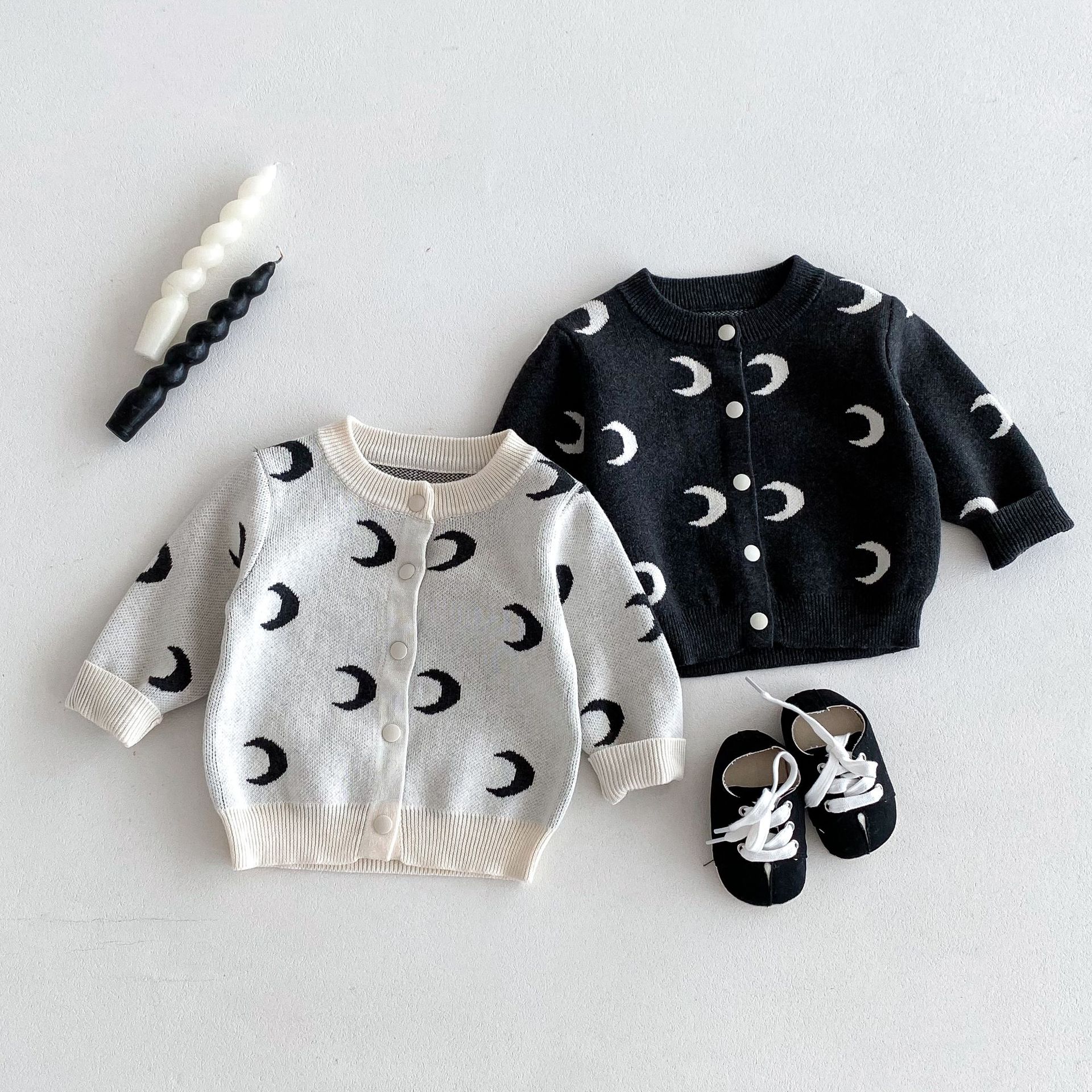 여자 스웨터 코트 가을 착용 한국 스타일 아기 니트 카디건 남녀 아기 코튼 원사 스타 올매치 모직
