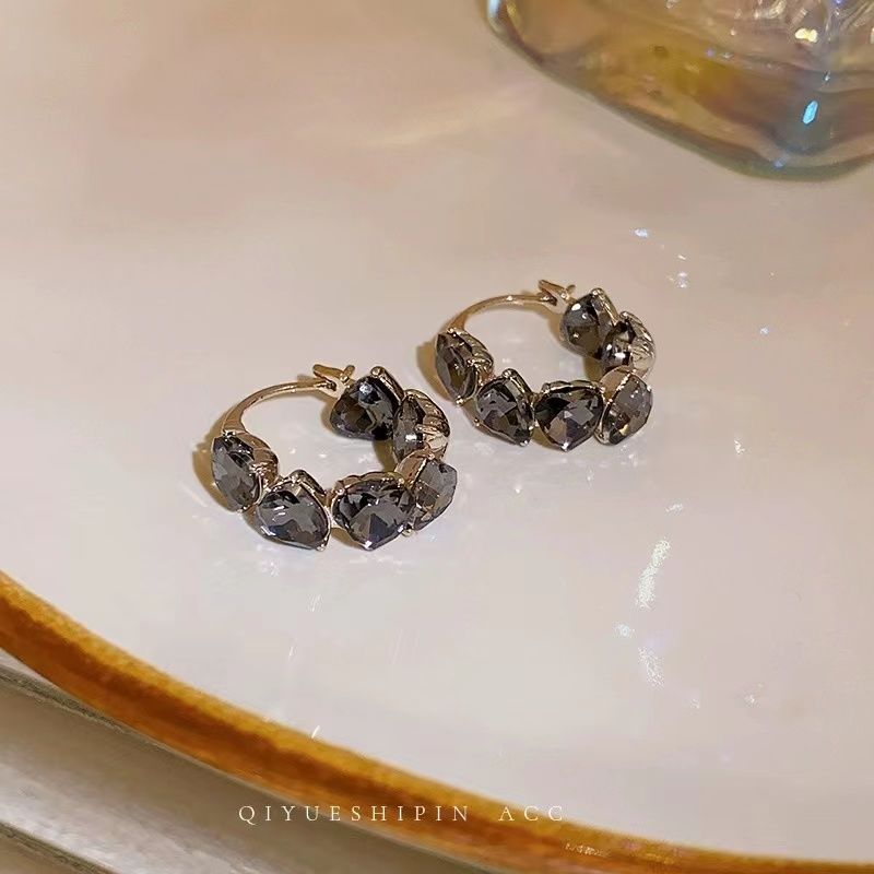 합금 귀걸이 패션 라이트 럭셔리 하이 엔드 틈새 디자인 센스 블랙 러브 이어 링 프렌치 레트로 우아한 귀 버클스토어 가기
